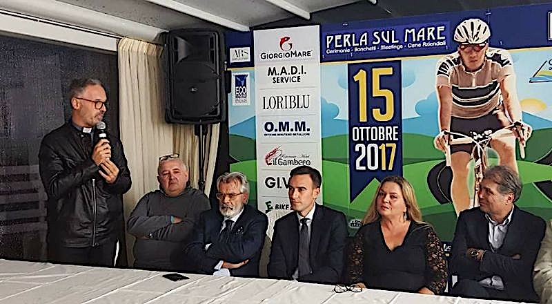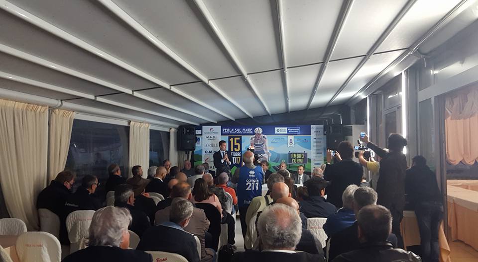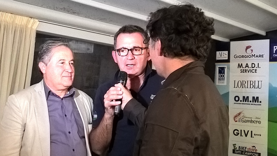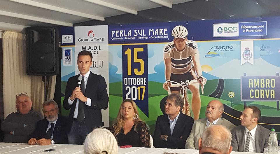 Organizzato dal Comitato del Grande Ciclismo a Porto Sant’Elpidio, capitanato dal noto ristoratore Piero De Santis, in collaborazione con la Gio.Ca Communications e con il patrocinio dell’amministrazione comunale (sotto la guida di Nazareno Franchellucci) l’evento vuole essere veicolo di valorizzazione e promozione turistico-culturale del territorio fermano, ma anche un modo per esprimere la vicinanza che Porto Sant’Elpidio vuole dimostrare alle popolazioni dei Sibillini colpite recentemente da eventi sismici che hanno causato non poche difficoltà ai paesi dell’entroterra fermano-maceratese. Nella serata erano presenti: Nazareno Franchellucci (Sindaco di Porto Sant’Elpidio), Milena Sebastiani (Assessore allo Sport), Cinzia Martellini (Presidente Givi Plast), Il presidente della BCCP di Ripatransone, Remigio Ceroni (Senatore e Sindaco di Rapagnano), Piero De Santis (Presidente del Grande Ciclismo a P.S.Elpidio), il Presidente di “GiorgioMare”, Licio Livini (presidente dell’Area Vasta 4), Don Paolo Canale (Parroco della Parrocchia della Madonna dell’Addolorata della Corva), Luigi Mori (Assessore di Montefortino) e Giacomo Piccinini (Assessore al turismo di Amandola).