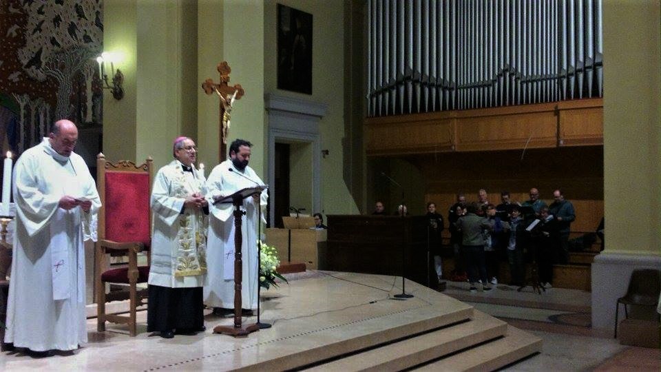 DIOCESI – Venerdì 20 ottobre presso la Basilica Cattedrale di Santa Maria della Marina a S. Benedetto del Tronto, presieduta dal vescovo S.E. mons. Carlo Bresciani, si è svolta la celebrazione congiunta della Giornata Mondiale Missionaria (che sarà solennemente festeggiata in tutte le chiese nella giornata di domenica 22) e del Mandato Diocesano ai catechisti. Don Nicola Spinozzi e don Dino Pirri, direttori rispettivamente del Centro Missionario Diocesano e dell’Ufficio Catechistico Diocesano, organizzatori dell’evento, hanno curato l’animazione insieme ai volontari del C.M.D. e dell’Ufficio Catechistico.