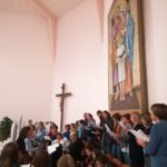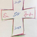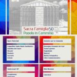 Il logo e il motto dell’anniversario parrocchiale ne offrono una sintesi felice. Una croce colorata ed un invito alla comunità a riscoprirsi “Popolo di Dio in cammino”.