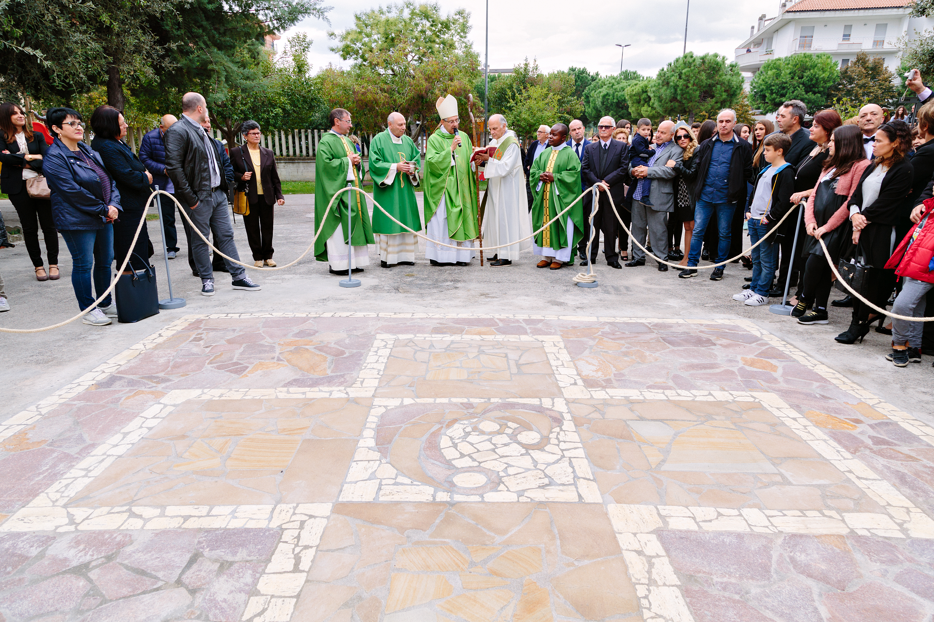 Il primo segno esteriore dell’avvio di questo percorso è stata la benedizione delle opere nel Giardino del Cuore, curate personalmente da don Francesco. Si tratta di un altare in pietra dedicato alla Madonna e di un mosaico, realizzato con tante pietre che formano una Sacra Famiglia all’interno della croce.