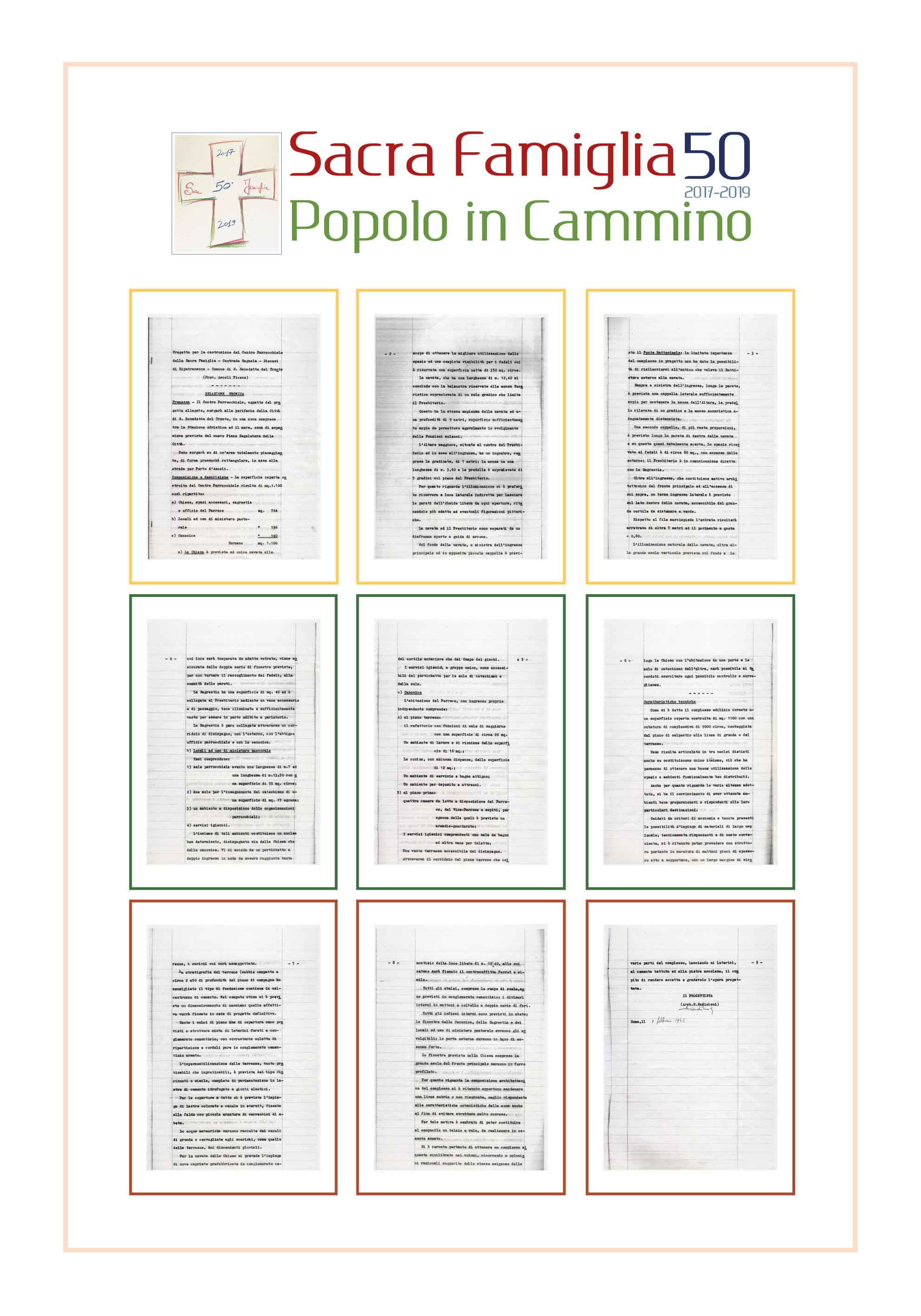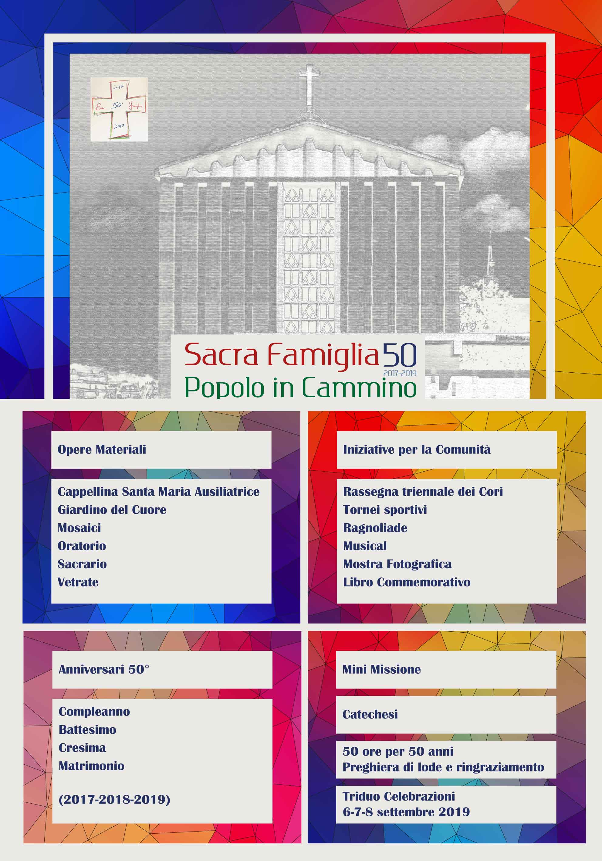 “Il 22 ottobre 1967 è stata posta la prima pietra per la costruzione della chiesa Sacra Famiglia, il 7 settembre 1969 la chiesa è stata consacrata con cerimonia solenne per mano del Vescovo Vincenzo Radicioni. – riferisce don Francesco – Da allora sono trascorsi cinquant’anni, nei quali la parrocchia ha vissuto le gioie, le speranze, le tristezze e le angosce degli abitanti del quartiere. La fisionomia della nostra parrocchia in questi anni è molto cambiata. Nuove case, nuovi spazi, nuove famiglie sono venute da ogni parte d’Italia e del mondo per diventare comunità aperta. Sia una festa per tutti, accompagnati da tante belle iniziative per aumentare l’amore alla nostra chiesa e costruire una comunità sempre più viva. Auguri.”