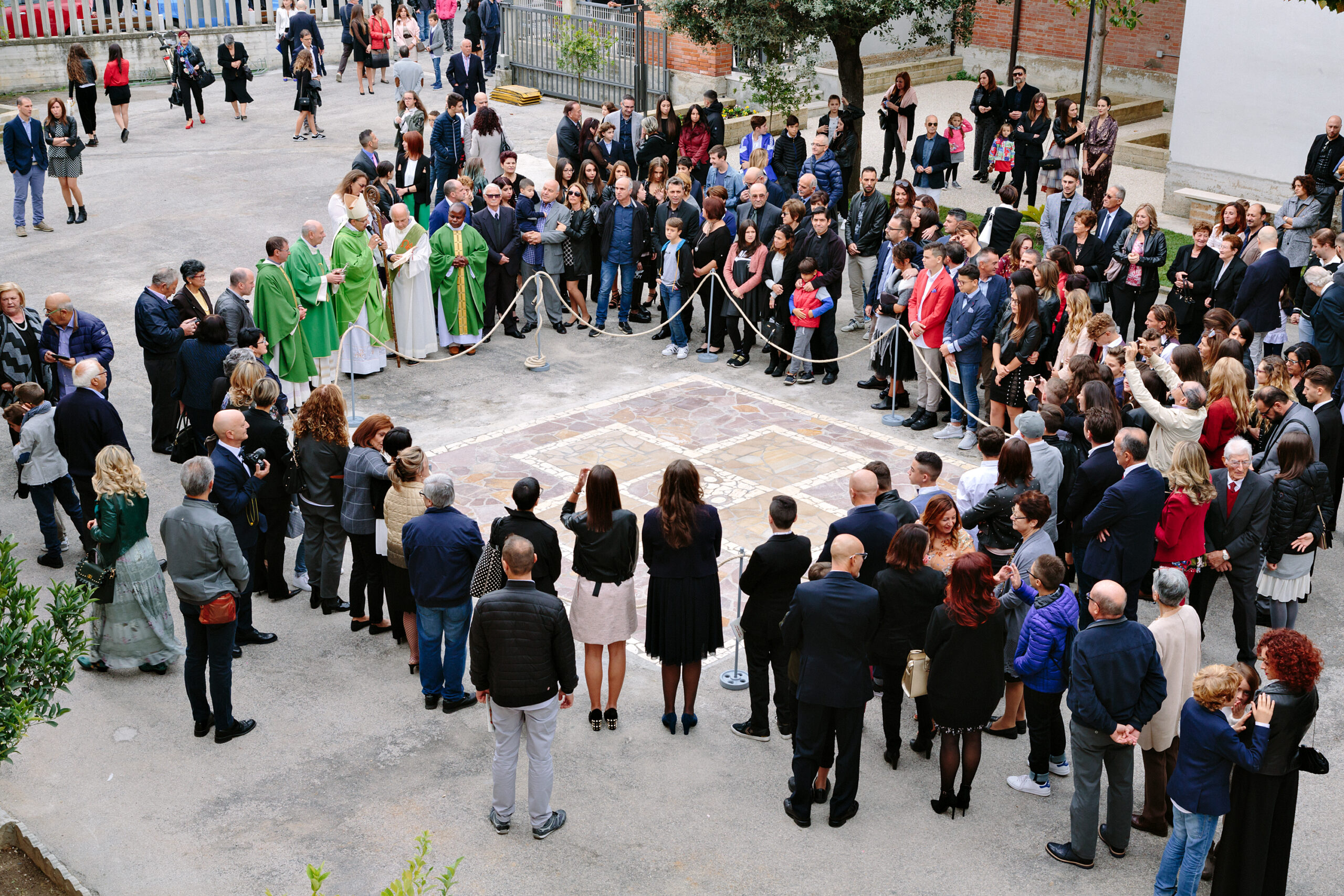 Il primo segno esteriore dell’avvio di questo percorso è stata la benedizione delle opere nel Giardino del Cuore, curate personalmente da don Francesco. Si tratta di un altare in pietra dedicato alla Madonna e di un mosaico, realizzato con tante pietre che formano una Sacra Famiglia all’interno della croce.