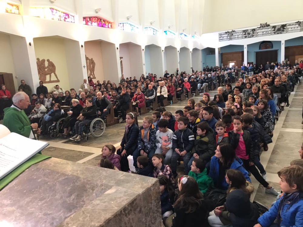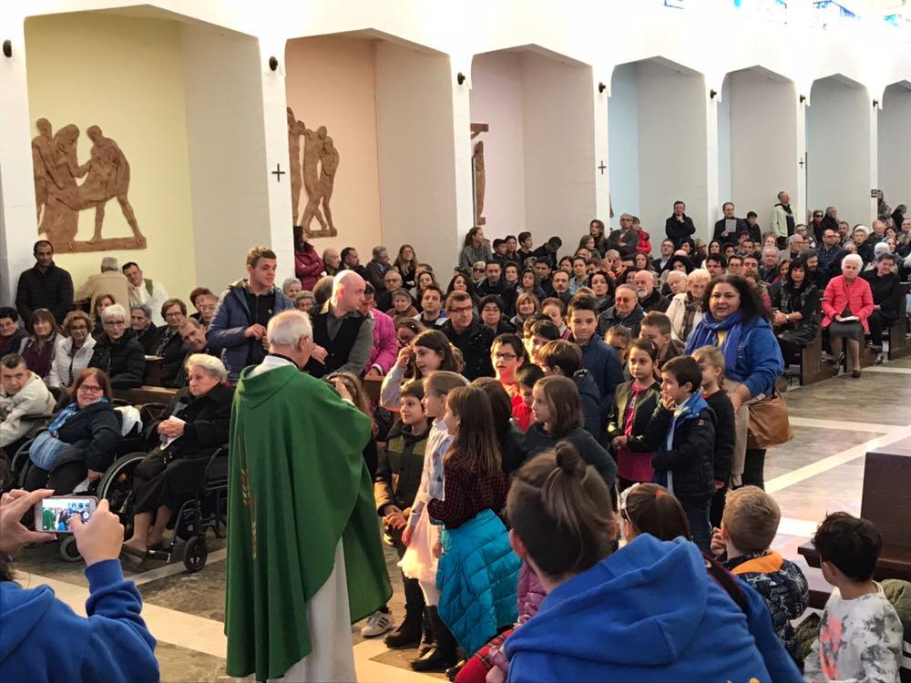 La Celebrazione Eucaristica domenicale, che già accoglieva i partecipanti del pellegrinaggio unitalsiano a Lourdes, si è arricchita così della presenza di tanti bambini e ragazzi accompagnati dai loro genitori.