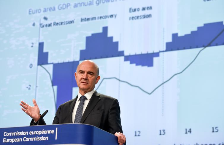 Dopo cinque anni di crescita, modesta ma continua, “adesso l’economia Ue ha una marcia in più”. Pierre Moscovici, commissario per gli affari economici e finanziari, presenta le Previsioni economiche d’autunno. Sorride, è rilassato. Il commissario francese da 18 trimestri, come egli stesso specifica, porta buone notizie nella sala stampa del palazzo Berlaymont e anche questa volta non tradisce le attese. Il Pil cresce su scala europea attorno al 2%: un po’ meglio quest’anno, in lieve frenata nel 2018 e 2019. Le Previsioni dell’Esecutivo guardano infatti all’orizzonte triennale, benché, puntualizza lo stesso Moscovici, “ragioniamo a condizioni generali invariate”. Ci vuole dunque prudenza, nei prossimi 24 mesi il quadro di fondo potrebbe mutare. Poi dallo stesso Moscovici l’abituale appello agli Stati membri: “Ognuno faccia la sua parte. Bisogna sostenere la crescita con investimenti e riforme”. Si può far conto anche sulla leva fiscale. Infine insiste sulle due maggiori preoccupazioni che traspaiono dalle 190 pagine del documento “European Economic Forecast – Autumn 2017”: anzitutto la disoccupazione cala ma non abbastanza e non presenta medesimi ritmi in tutti i Paesi; secondo, i salari non crescono a ritmi sufficienti.