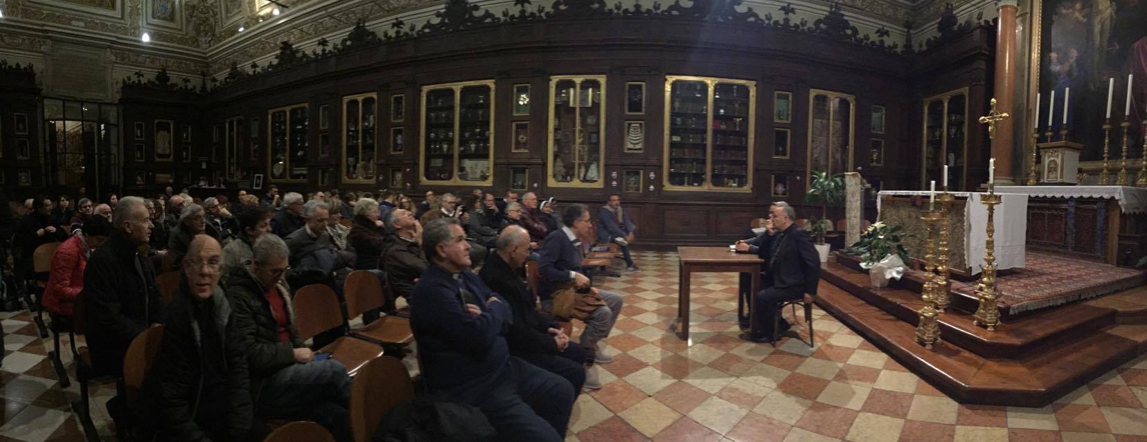 LORETO – Mercoledì 8 novembre, presso la sala del Pomarancio, all’interno della Basilica della Santa Casa di Loreto, si è svolto il consueto incontro formativo organizzato dalla delegazione regionale della Caritas Marche, con la straordinaria partecipazione del card. Franco Montenegro, presidente della Caritas Italiana, presidente della Commissione episcopale per le migrazioni e della Fondazione Migrantes, ancora più noto per essere il vescovo di Lampedusa che accolse il primo, storico viaggio di Papa Francesco nel luglio 2013. Ancor prima, ebbe il coraggio di vietare i funerali ad un boss mafioso.