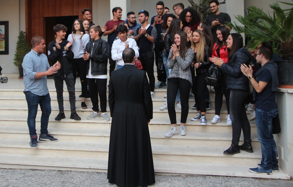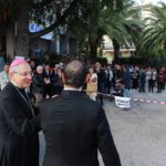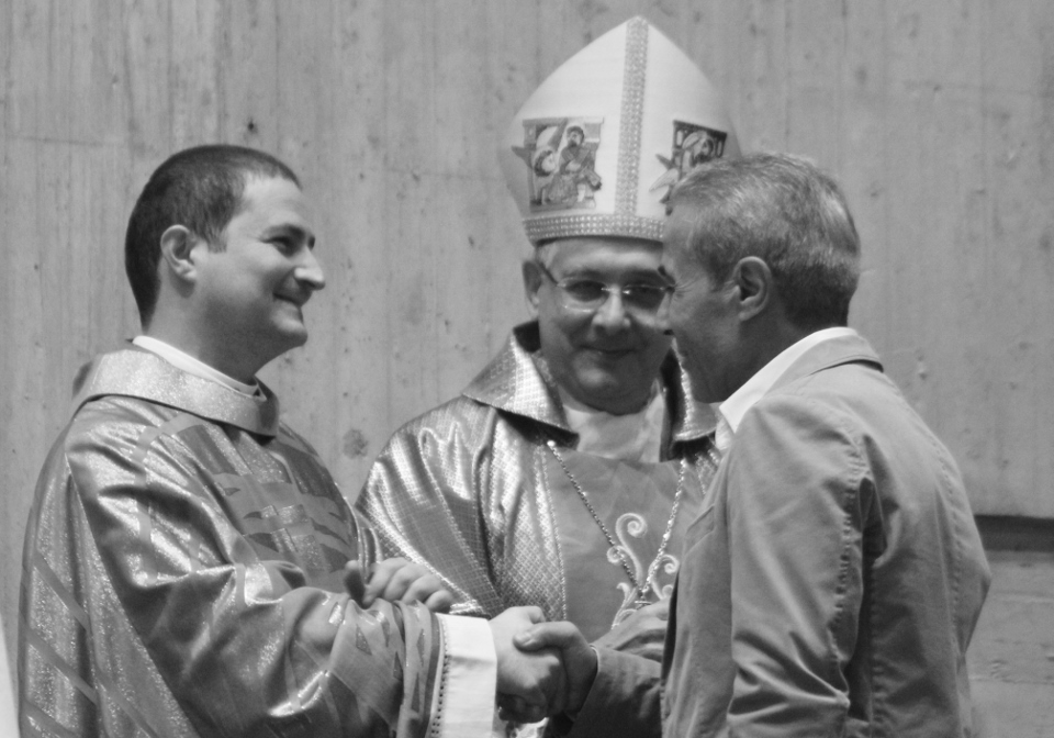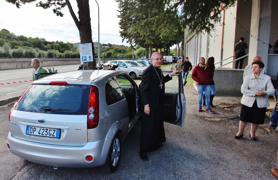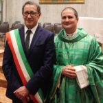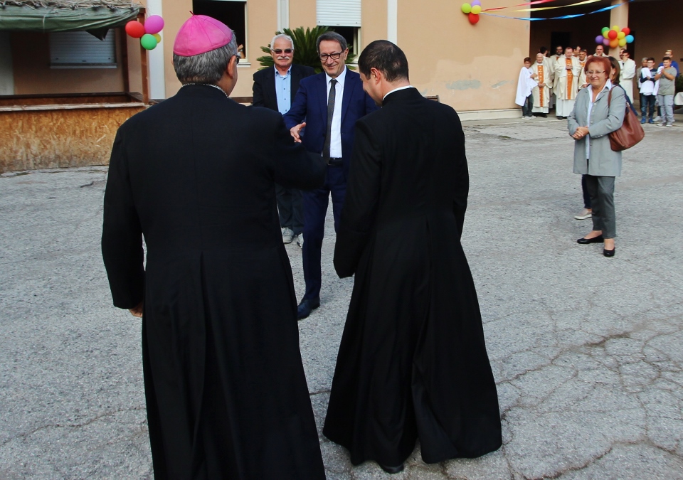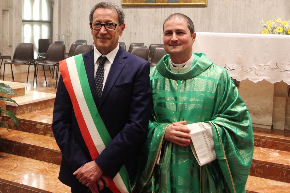 Ad accogliere Don Gianni nello spazio antistante alla Chiesa il Sindaco di San Benedetto del Tronto, Pasqualino Piunti