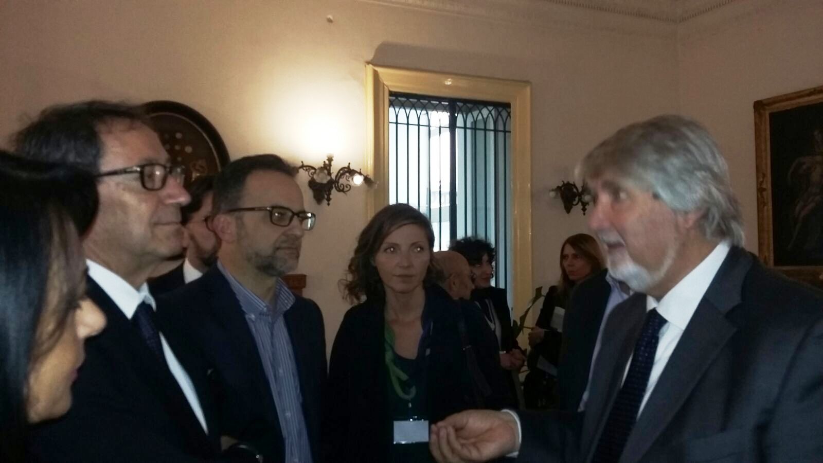 Il sindaco Piunti, al termine del suo intervento, ha ricevuto le congratulazioni del ministro del lavoro e politiche sociali Giuliano Poletti.