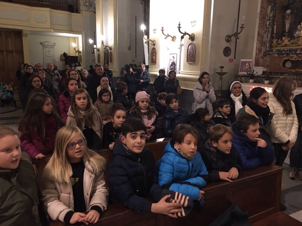 SAN BENEDETTO DEL TRONTO – Sono stati i bambini delle elementari ad aprire la Novena all’Immacolata con un rosario recitato sotto la statua della Madonna. Una presenza dolce quella dei bambini, come il volto di Maria. E’ stata una preghiera semplice proprio come deve essere quella del rosario, accompagnata dalle meditazioni di Padre Piero Berti (Padre Passionista). “Abbiamo pregato nel cuore per tutti i bambini e i ragazzi della parrocchia e della nostra città” – afferma una catechista – “Quelle vocine melodiose hanno toccato il cuore di tutti fino ad arrivare a Maria Santissima. Padre Piero è una bella presenza per questa speciale Novena.”