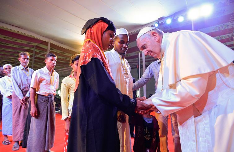 “Cari fratelli e sorelle, noi tutti vi siamo vicini. È poco quello che noi possiamo fare perché la vostra tragedia è molto grande. Ma facciamo spazio nel nostro cuore. A nome di tutti, di quelli che vi perseguitano, di quelli che hanno fatto del male, soprattutto per l’indifferenza del mondo, vi chiedo perdono. Perdono. Tanti di voi mi avete detto del cuore grande del Ban2gladesh che vi ha accolto. Adesso io mi appello al vostro cuore grande perché sia capace di darci il perdono che chiediamo”. Queste le parole rivolte da Papa Francesco al gruppo di profughi Rohingya al termine dell’incontro interreligioso ed ecumenico avvenuto nel pomeriggio di oggi nel giardino dell’arcivescovado di Dhaka. “Cari fratelli e sorelle – ha detto -, il racconto ebreo-cristiano della creazione dice che il Signore che è Dio ha creato l’uomo a sua immagine e somiglianza. Tutti noi siamo questa immagine. Anche questi fratelli e sorelle. Anche loro sono immagine del Dio vivente. Una tradizione delle vostre religioni dice che Dio, all’inizio, ha preso un po’ di sale e l’ha buttato nell’acqua, che era l’anima di tutti gli uomini; e ognuno di noi porta dentro un po’ del sale divino. Questi fratelli e sorelle portano dentro il sale di Dio”. Ed ha concluso: “Cari fratelli e sorelle, soltanto facciamo vedere al mondo cosa fa l’egoismo del mondo con l’immagine di Dio. Continuiamo a far loro del bene, ad aiutarli; continuiamo a muoverci perché siano riconosciuti i loro diritti. Non chiudiamo i cuori, non guardiamo dall’altra parte. La presenza di Dio, oggi, anche si chiama ‘Rohingya’. Ognuno di noi, dia la propria risposta”.