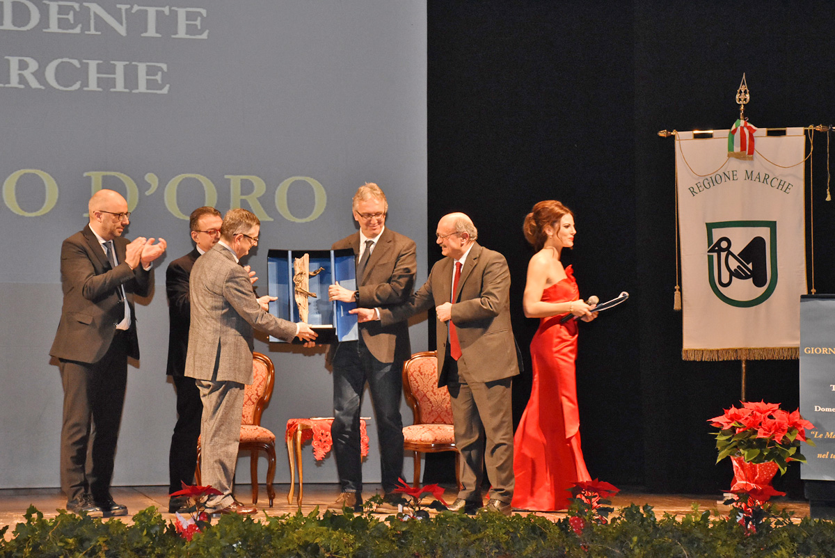 Il momento centrale della manifestazione è sempre la consegna dei premi istituiti come riconoscenza a persone o associazioni ch si distinguono per la loro generosità e per il grande cuore marchigiano. Entrambi realizzati dallo scultore Renzo Romagnoli di Castelfidardo. Il Picchio d’Oro 2017 è stato conferito dal presidente Luca Ceriscioli a Neri Marcorè, con le motivazioni lette dal coordinatore della Commissione regionale preposta alla designazione, Claudio Renato Minardi, vice presidente del Consiglio regionale, alla presenza del presidente dell’Assemblea legislativa, Antonio Mastrovincenzo. Il premio, conferito all’artista per l’ideazione del Progetto RisorgiMarche, a sostegno delle aree terremotate, è stato ritirato dalla moglie Selene, accompagnata dal direttore artistico di RisorgiMarche, Giambattista Tofoni. Un video messaggio di Marcorè, assente per motivi personali (è impegnato in una navigazione solitaria in alto Atlantico), è stato proiettato in sala. La Lega dl Filo d’Oro ha invece ricevuto il Premio speciale del presidente della Regione, ritirato dal presidente Francesco Marchesi e dal segretario generale del Filo d’Oro Rossano Bartoli. Il riconoscimento è stato assegnato “per i 50 anni di impegno a favore delle persone sordocieche e pluriminorate psicosensoriali espresso attraverso l’attività del Centro di riabilitazione d’Osimo”.