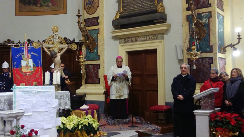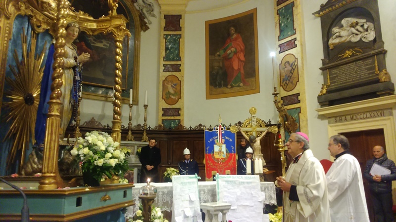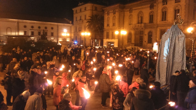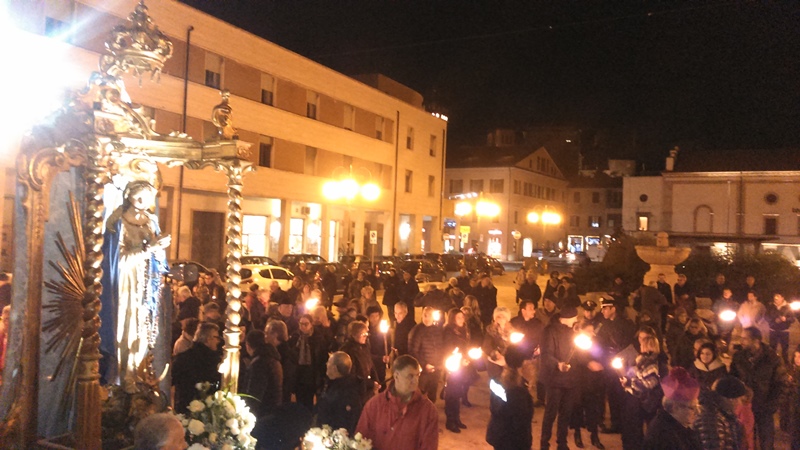 DIOCESI – Venerdì 8 dicembre, nella solennità dell’Immacolata Concezione, la comunità Sambenedettese si è ritrovata nella Basilica Cattedrale di Santa Maria della Marina per la celebrazione, presieduta dal vescovo S.E. Mons. Carlo Bresciani, della santa messa e per partecipare alla processione e poi al rinnovamento del voto cittadino presso la Chiesa di S. Benedetto Martire. Tale voto fu emesso dalle autorità cittadine in occasione della grande epidemia di colera del 1855 e, in seguito alla grazie ricevuta, viene rinnovato ogni anno dall’amministrazione comunale.