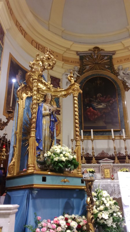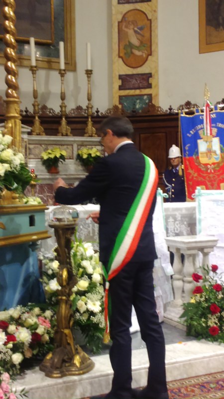 Al termine della liturgia eucaristica la solenne processione ha guidato i numerosissimi partecipanti verso il Paese Alto, dove presso la chiesa di S. Benedetto Martire il sindaco Piunti ha personalmente rinnovato il voto cittadino, ricevendo dalle mani del vescovo il cero da accendere ai piedi della statua della Vergine.