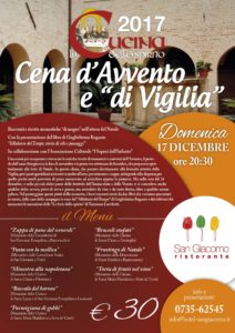 MONTEPRANDONE – Ispirate da racconti e ricette monastiche di “magro” nell’attesa del Natale, Le Natalizie di Monteprandone si arricchiscono di un appuntamento immancabile per gli amanti della cultura storico-enogastronomica. In collaborazione con l’associazione culturale “I Sapori dell’Infinito”, Il Ristorante San Giacomo propone la “Cena d’avvento e di vigilia”, una serata per recuperare e rievocare le antiche ricette di monasteri e conventi tipiche del periodo dell’Avvento, il periodo dell’anno liturgico tra la fine di novembre e le prime tre settimane di dicembre che prepara spiritualmente le feste di Natale. In questo clima che portava direttamente alla festosa attesa della vigilia, i pasti quotidiani attingevano molto alla sobrietà all’orto, per la preparazione di minestre e zuppe e poco alla dispensa, utilizzando umili provviste di pesce conservato ad arricchire appena le pietanze. Ma nella sera del 24 dicembre e nelle piccole sospensioni delle festività dell’Immacolata e della Venuta, qualche dolce severo privo di uova e grasso, arricchito da vino e da tanta frutta era lecito, oltre a qualche aroma goloso. Nel punteggiare questi piatti della memoria i brevi racconti tratti da due libri che verranno presentati in serata. Dalle case delle Campagne è ispirato “Il Sillabario del Tempo” di “Guglielmina Rogante” e dai riflettori dei monasteri le narrazioni de “Le feste dello spirito” di Tommaso Lucchetti.