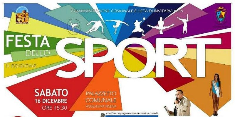 ACQUAVIVA PICENA – Sabato 16 dicembre presso il Palazzo dello Sport dalle ore 15:30 si svolgerà la seconda edizione della “Festa dello Sport”, con il patrocinio del Comune di Acquaviva Picena e la collaborazione della Pro Loco, Radio R9 e del Centro di Formazione Riviera delle Palme Salvamento Agency. Presenterà Sandro Benigni madrina d’eccezione Ilaria Pallotti Miss Marche Sport e campionessa di ginnastica artistica che si esibirà in alcuni esercizi. Il programma prevede la sfilata d’ingresso delle associazioni sportive presenti ad Acquaviva e in seguito una piccola esibizione di ognuno di esse: BFIT fitness, Koreutica A.S.D. danza classica moderna e jazz, A.S.D. Acquaviva scuola calcio, Sponsalia giochi storici, G.S. Acquaviva ciclismo, Diavoli verde rosa pattinaggio, Shiseikan Europe arti marziali, Sambenedettese calcio femminile. Si proseguirà con la benedizione dello sportivo e il brindisi finale con gli auguri per le festività natalizie da parte dell’Amministrazione Comunale di Acquaviva Picena. Prevista l’animazione per bambini e la presenza di babbo natale con tanti doni da consegnare. La festa avrà l’accompagnamento musicale di Paolo’s music and song.