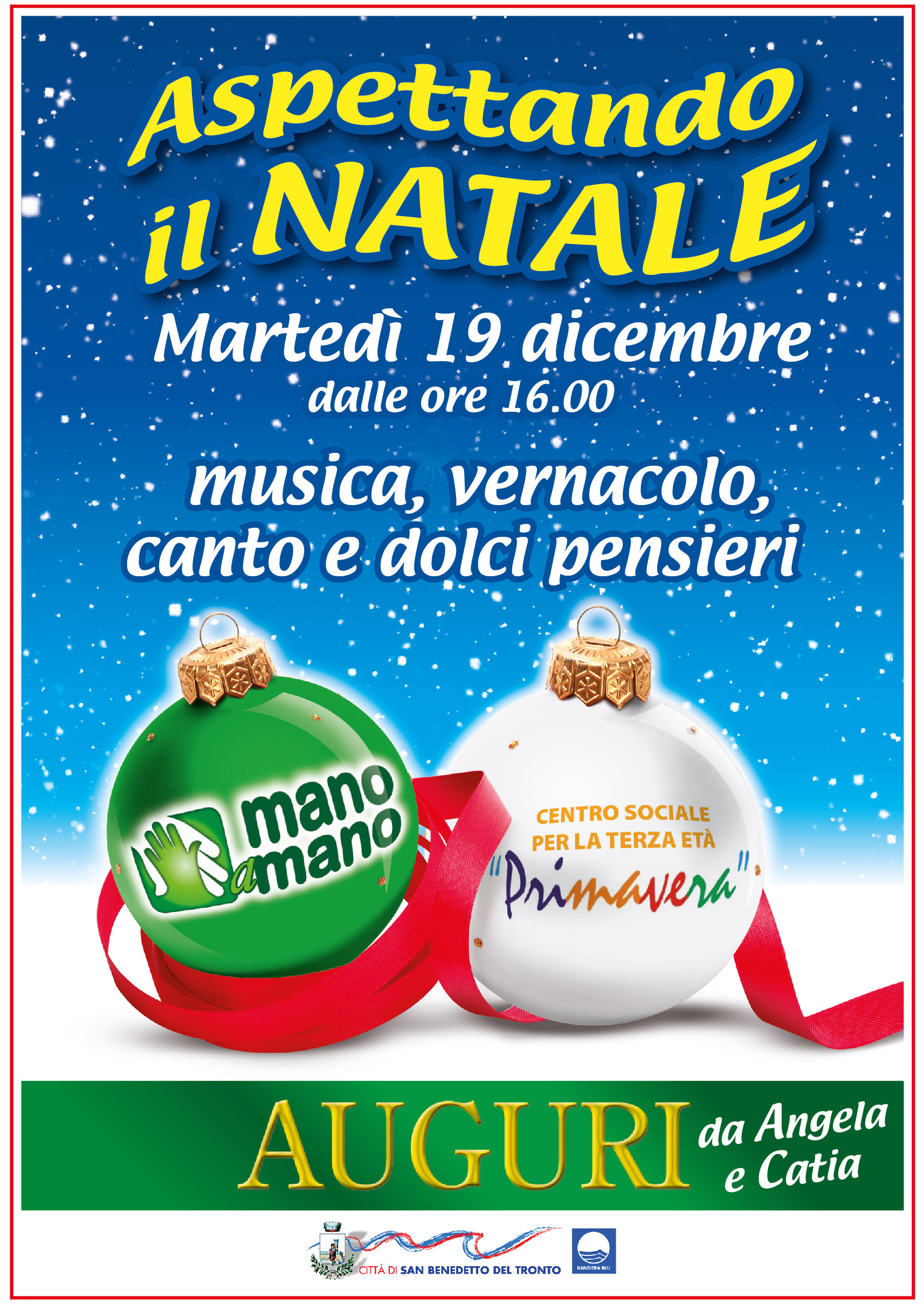 SAN BENEDETTO DEL TRONTO – Al Centro Sociale Primavera si festeggia l’arrivo del Natale: martedì 19 dicembre l’Amministrazione comunale e la Cooperativa Sociale Mano a Mano propongono un appuntamento carico di dolcezza, di allegria e di festa, insieme ai tanti ospiti che interverranno per animare il pomeriggio.