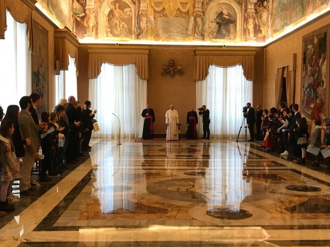 “Cari ragazzi, anche quest’anno, in rappresentanza dell’Azione cattolica ragazzi di tutta Italia, siete venuti per fare gli auguri natalizi al Papa. Per me sono auguri particolarmente gioiosi, che avete voluto accompagnare con i frutti delle vostre iniziative di solidarietà in favore dei poveri e delle persone più svantaggiate”. Così papa Francesco nel saluto con cui sabato mattina ha accolto in udienza, nella Sala del Concistoro del Palazzo Apostolico, una rappresentanza di ragazzi dell’Azione Cattolica Italiana.