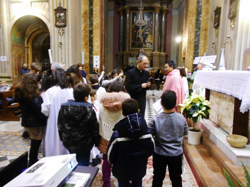 ACQUAVIVA PICENA – Domenica 17 dicembre nella parrocchia di san Niccolò ad Acquaviva Picena don Alfredo ha benedetto durante le Celebrazioni Eucaristiche i bambinelli che i fedeli avevano portato con sé. Tanti i bambini presenti con i loro bambinelli o addirittura la capanna con la Sacra Famiglia per intero. La Messa delle 11:15 in particolare è stata animata dalla Caritas parrocchiale che ha augurato un santo Natale e ha raccomandato di essere più vicini al fratello in difficoltà, al bisognoso, ai bambini maltrattati, a chi soffre di solitudine. Le offerte raccolte domenica 17 dicembre sono andate interamente alla Caritas, in parte a quella parrocchiale e in parte a quella diocesana. La Messa delle 18:00 invece, è stata animata dalle coppie di fidanzati che frequentano il corso in preparazione al Sacramento del matrimonio.