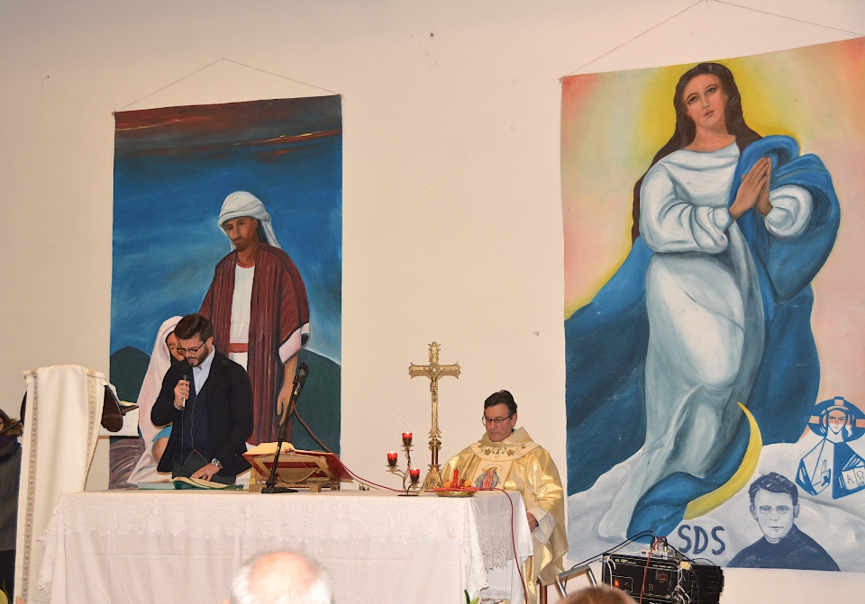 Il tutto è stato anche impreziosito dalla presenza, alle spalle dell’altare di due bellissime tele che il pittore colombiano JUAN JOSE’ CARASQUILLA (Padre Salvatoriano) ha donato alla Parrocchia (come fece per l’acquerello raffigurante San Michele Arcangelo).