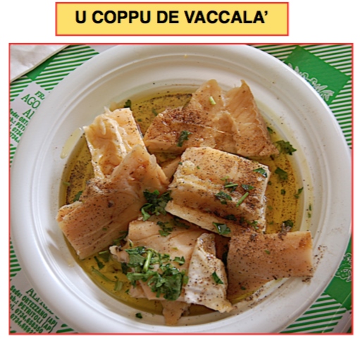 Ottimo il Baccalà (sempre preparato come trecento anni fa) come ottimo è il vino che lo accompagna! “U Coppu” prevede un’abbonante porzione di Baccalà (confezionato come la tradizione vuole), un filoncino di pane locale e un litro di vino bianco.