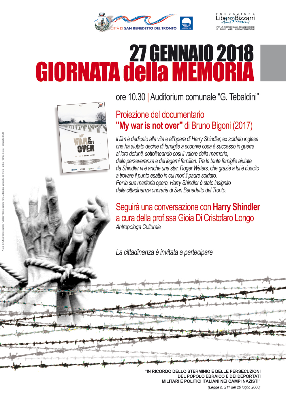 La cerimonia, organizzata quest’anno con la collaborazione preziosa della Fondazione “Libero Bizzarri”, è in programma in Auditorium comunale a partire dalle 10,30: verrà proiettato il documentario “My war is not over” di Bruno Bigoni (2017).
