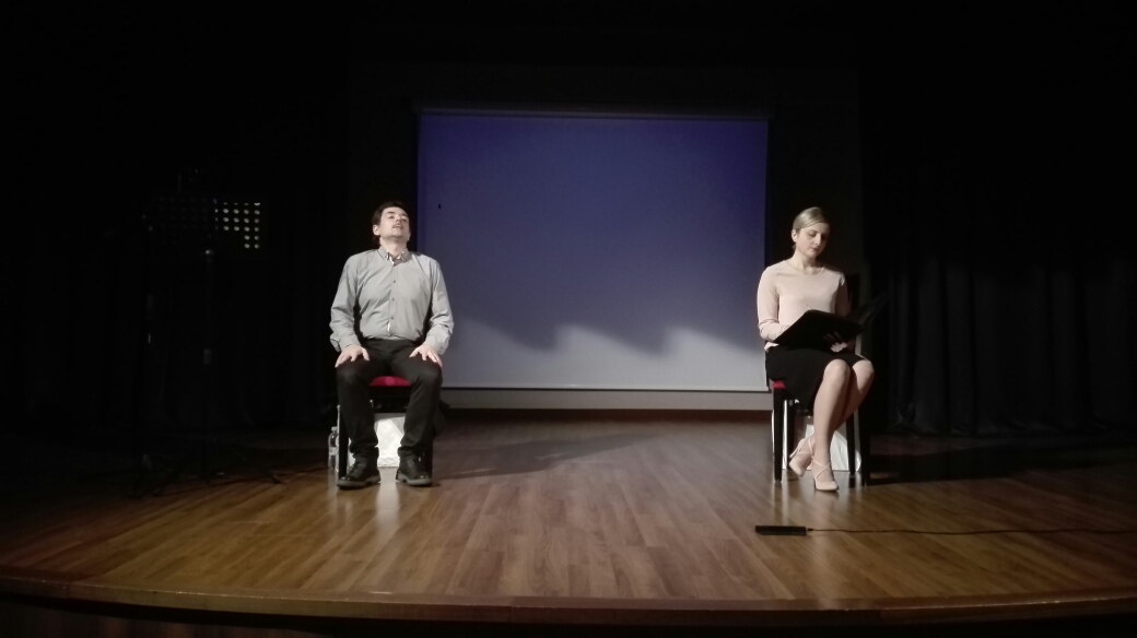 L’opera, “Il signor nessuno”, è stata rappresentata dalla compagnia teatrale “Four lo”di Acquaviva Picena e recitata da due soli attori :Simone Cameli e Mara Nicolai.