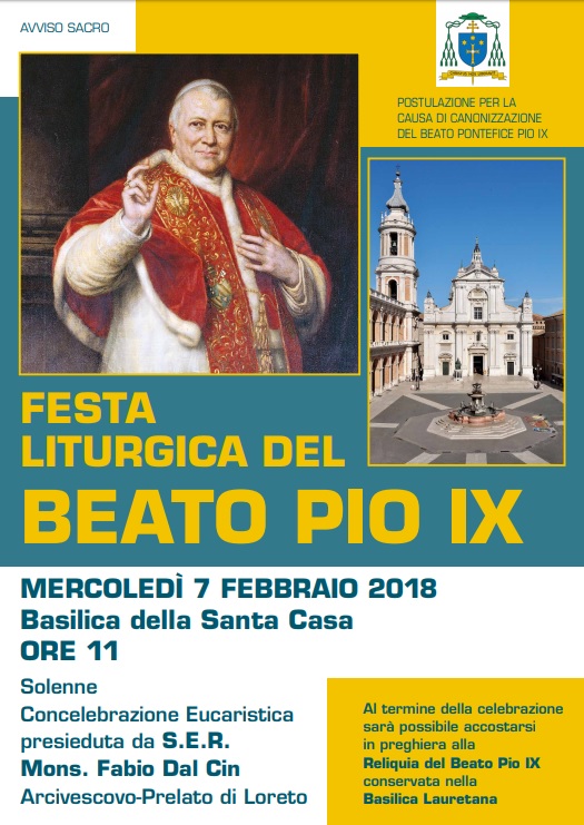 MARCHE – Il 3 Settembre 2000, Giovanni Paolo II beatificava Pio IX, l’ultimo Papa marchigiano, il Papa-re. Di lui si è detto troppo e male; spesso si è confuso, a motivo di un’errata quanto politicamente schierata teoria storica, il ruolo di Papa Mastai. Il senigalliese, in ben trentadue anni di pontificato, ha traghettato la Chiesa e la società verso nuovi orizzonti, animato da un forte desiderio di progredire e di ordinare. Due verbi che caratterizzano il pastore autentico: far crescere e dare una direzione al proprio gregge. Altrimenti, non sarebbe stato indetto un concilio ecumenico, non sarebbero state approvate Congregazioni come quella dei Salesiani, il centro Italia non avrebbe conosciuto uno sviluppo tecnico e produttivo non indifferente. Ora, il Papa che vinse l’epilessia grazie all’intercessione della Madonna di Loreto e proclamò la stessa Vergine “Immacolata” (e che la medesima tale si presentò a Lourdes, apparendo a Bernardette) è in forte e grandissima rivalutazione. Il Postulatore, Monsignor Carlo Liberati, anima di un lavoro indefesso per la canonizzazione, riceve di continuo richieste di reliquie da ogni parte del mondo; dietro suo impulso e grazie alla fattiva collaborazione di Monsignor Dal Cin e dei Padri Cappuccini della Basilica lauretana, da quest’anno la festa liturgica sarà nell’altra metà di Nazareth marchigiana, che ne custodisce una reliquia. L’invito, dunque, è triplice: pregare, far conoscere e partecipare alle varie iniziative. Beato Pio IX, prega per noi!