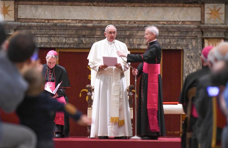 “Non sempre chi annuncia il Vangelo è accolto, applaudito. A volte è rifiutato, ostacolato, perseguitato, addirittura imprigionato o ucciso”. “Allora bisogna perseverare, avere pazienza, ma non dobbiamo aver paura di niente nel testimoniare Gesù e la sua parola di Verità”. Lo afferma Papa Francesco nel discorso consegnato ai partecipanti al XXXVII Capitolo generale della Congregazione delle Sacre Stimmate di Nostro Signore Gesù Cristo (Stimmatini) che ha ricevuto in udienza nella Sala del Concistoro del Palazzo Apostolico. Il Papa li esorta “a ravvivare in voi e nelle vostre comunità il fuoco della Parola di Dio: esso deve ‘incendiare’ anche i cuori di quanti si trovano alle periferie dei contesti urbani ed ecclesiali”. “Imitando il divino Maestro – prosegue Francesco – anche voi siete chiamati a portare il fuoco nel mondo”. “Ma c’è un fuoco sbagliato e un fuoco buono, santo”, nota il Papa. “Dio nella Bibbia è paragonato al fuoco ma è un fuoco di amore, che conquista il cuore delle persone, non con la violenza, ma rispettando la libertà e i tempi di ciascuno”. Per questo, “il Vangelo si annuncia con mitezza e gioia” e “voi – sottolinea il Papa – potete portare le persone alla conversione, alla comunione con Cristo, per mezzo della gioia della vostra vita e con la mitezza”. “Il fuoco buono è il fuoco di Gesù”, prosegue Francesco, è “il fuoco della carità fraterna”. “La testimonianza d’amore di una comunità fraterna di missionari è conferma dell’annuncio evangelico, è la ‘prova del fuoco’”, aggiunge il Papa, osservando che “se in una comunità manca il fuoco buono, c’è freddezza, buio, solitudine. Se c’è il fuoco della carità fraterna, c’è il calore, la luce e la forza di andare avanti. E nuove vocazioni vengono attratte alla dolce missione di evangelizzare”. Il Papa invita i missionari Stimmatini a portare “questo fuoco nelle comunità cristiane, dove la fede di tante persone ha bisogno di essere riaccesa, di trovare forza per essere contagiosa”. Ma, “al tempo stesso, andate – ammonisce – uscite ad annunciare il Vangelo ai poveri, a quelli che non si sentono amati da nessuno, a chi vive nella tristezza e nella disperazione, ai carcerati, ai senza casa e senza tetto, agli immigrati, a chi fugge dalle guerre”. Da Francesco anche una consegna: “Abbiate un’attenzione particolare verso la famiglia” e “portate il fuoco di Cristo ai giovani, che hanno bisogno di qualcuno che li ascolti e li aiuti a trovare il senso alla vita”.