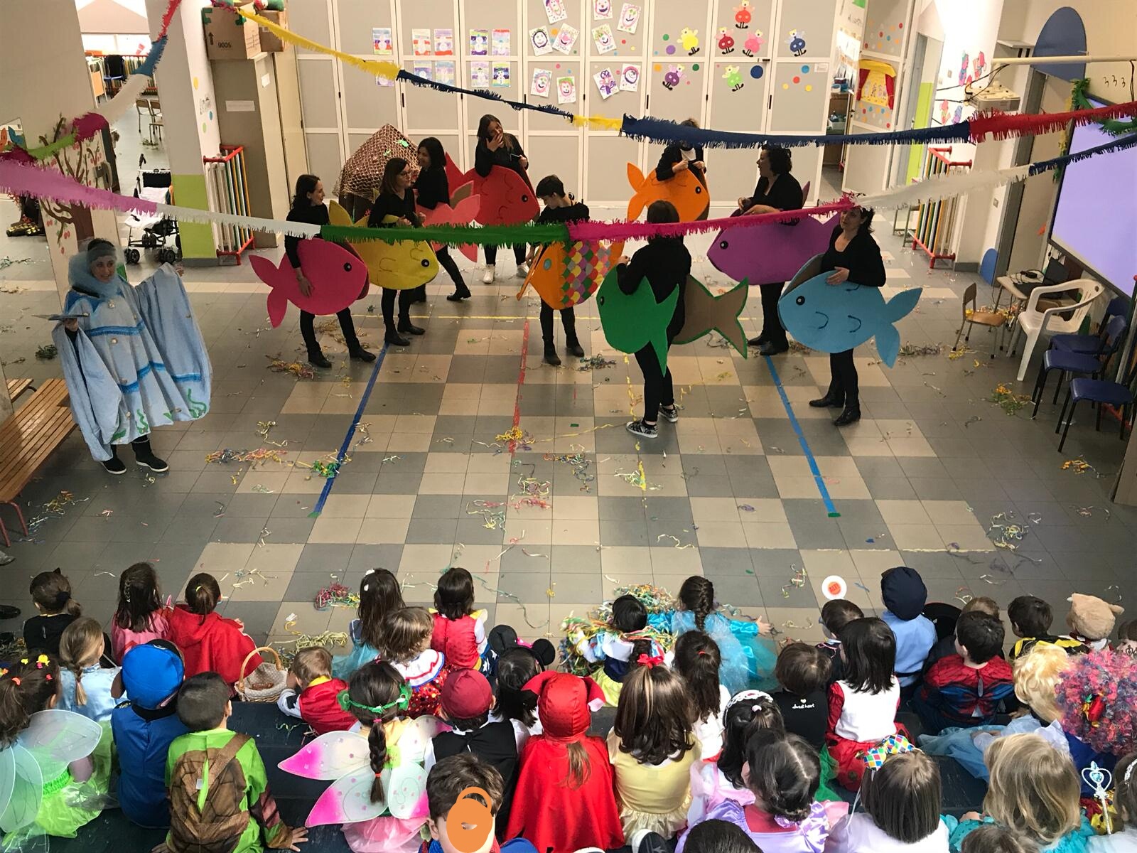 ACQUAVIVA PICENA – Presso la Scuola dell’Infanzia di Acquaviva Picena martedì 13 febbraio in occasione del Carnevale, i genitori, i bambini e le insegnanti dell’Istituto Scolastico dell’Infanzia hanno messo in scena lo spettacolo “Arcobaleno, il pesciolino più bello di tutti i mari”. La rappresentazione è nata dall’estro creativo e dalla passione per le rappresentazioni di un gruppo di genitori che in questo modo hanno regalato grandi emozioni, divertimento e stupore nei loro figli che si sono visti i genitori cimentarsi nella parte dell’attore, accorciando così la distanza tra le famiglie e l’ambiente scolastico, tra i bambini e gli insegnanti e tra il sano divertimento e l’impegno nel realizzare lo spettacolo. Tutta la recita ha coinvolto i presenti in un clima carnascialesco tra musica, balli e colori.