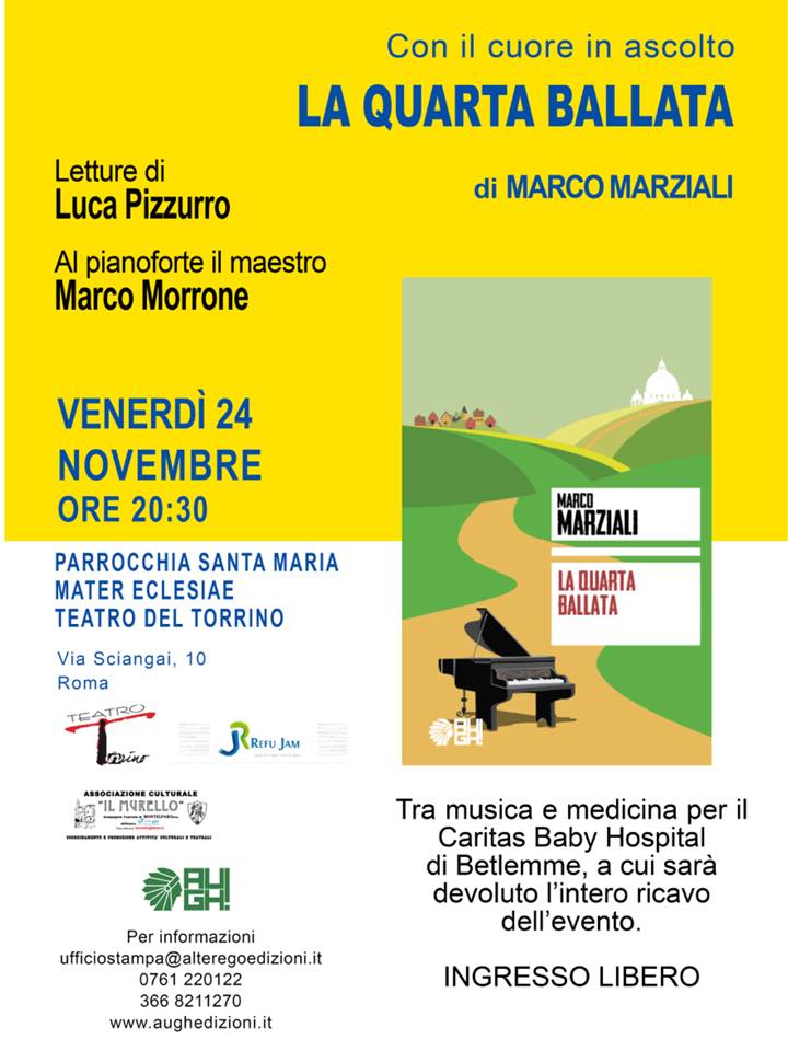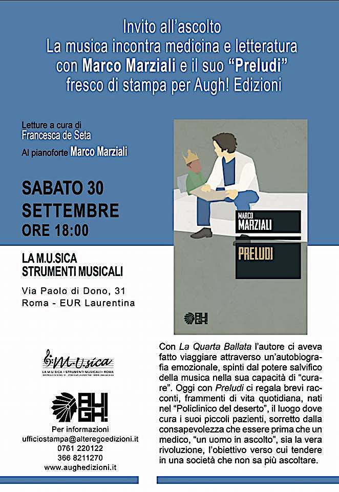 Sabato 10 Marzo 2018 alle ore 17 lo stesso Marco verrà, infatti, ad Ascoli Piceno per presentare il suo “Preludi”.