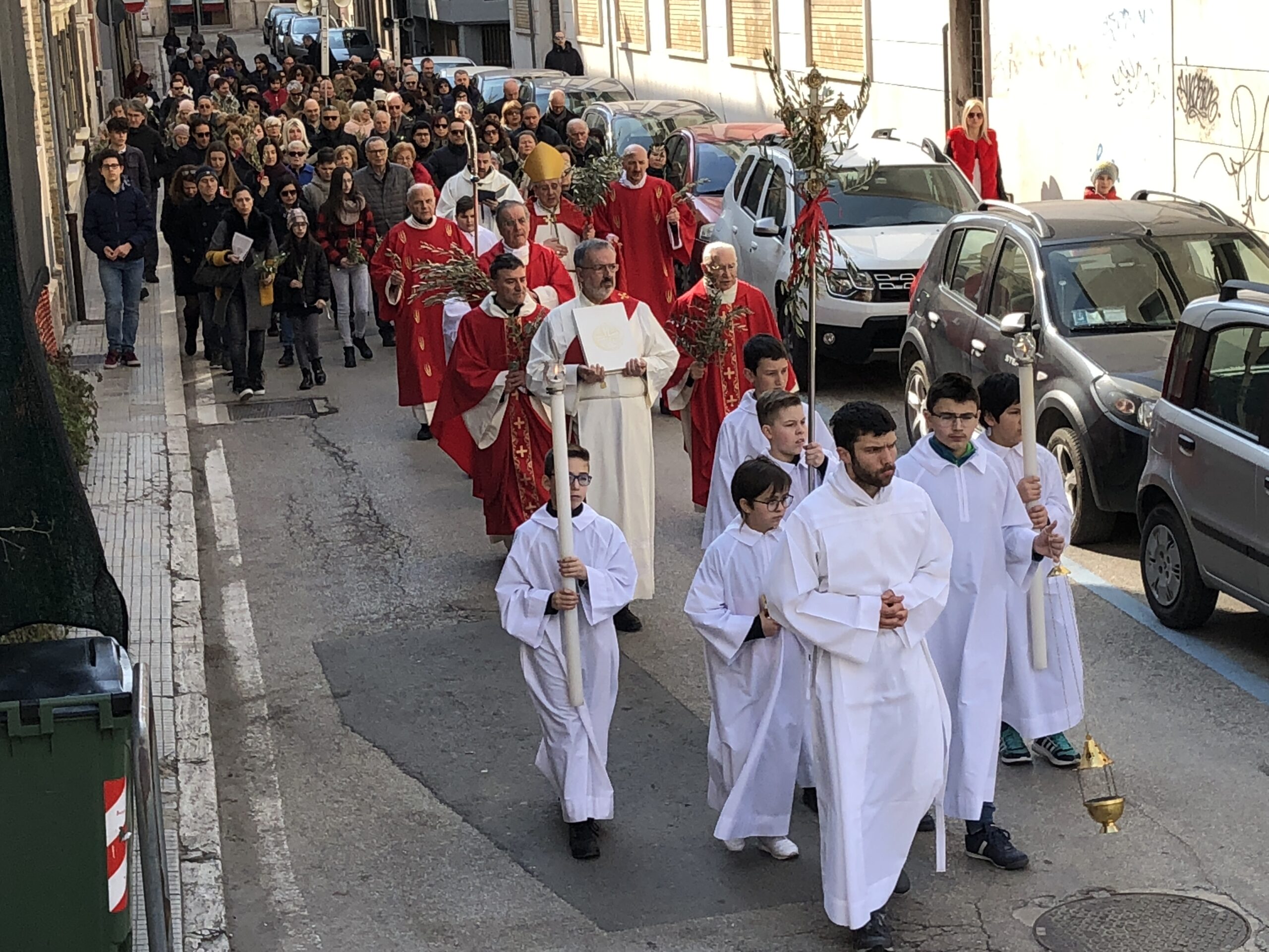 SAN BENEDETTO DEL TRONTO – Il Vescovo Carlo ha dato inizio ai riti della Settimana Santa. Clero e fedeli si sono riuniti davanti alla chiesa di San Giuseppe in Piazza Matteotti, dove, dopo la benedizione dei ramoscelli di ulivo, è stata proclamata la Parola di Dio. Con le parole del canto Pueri hebraeorum, si è svolta la processione, che rievocando l’ingresso di Gesù a Gerusalemme, si è diretta verso la Cattedrale, dove è stata celebrata la Santa Messa.