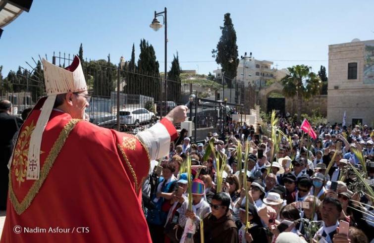 “Siamo felici di essere cristiani. Non abbiamo tanti momenti pubblici e forti, come questo, per stare insieme, cantare, danzare e lodare il Signore insieme, come Chiesa di Gerusalemme, Chiesa di Terra Santa. E lo vogliamo testimoniare con forza e lo annunciamo con gioia e senza paura, perché essere cristiani significa vivere nella gioia”. Lo ha detto mons. Pierbattista Pizzaballa, amministratore apostolico del Patriarcato latino di Gerusalemme, parlando alle migliaia di pellegrini e di cristiani provenienti dalle diverse parti di Palestina e Israele e di Giordania, fuori dalla chiesa di sant’Anna, a Gerusalemme, al termine della processione della Domenica delle Palme, cominciata dal Monte degli Ulivi. “Oggi – ha affermato mons. Pizzaballa – noi cristiani celebriamo anche il nostro amore non solo a Gesù, ma anche alla Città Santa, a Gerusalemme. Vogliamo dire e proclamare con determinazione che noi siamo parte di questa città, che è all’origine della nostra fede e custodisce la nostra storia cristiana. Vogliamo essere – ha aggiunto – quel piccolo seme di vita e di amore che sa portare frutto di speranza, di amore e di incontro: nelle nostre scuole, negli ospedali e nelle tante iniziative che caratterizzano la nostra presenza qui, nella nostra città. È in questo modo che vogliamo dire il nostro amore per la nostra città, che non abbandoneremo mai. Costruendo e creando legami, anche quando tutto parla di divisione. È così che Gerusalemme resterà sempre anche cristiana. E ne siamo orgogliosi”. Parlando della Pasqua imminente, l’amministratore apostolico ha ricordato che “non si può leggere l’ingresso di Gesù nella Città Santa senza che sia completato e illuminato dal racconto della Pasqua. Anche noi oggi entriamo allora, con Gesù, nella Pasqua. Pasqua significa donare la vita; significa passaggio dalla morte alla vita; significa amore. Entrare nella Pasqua e celebrare la Pasqua significa celebrare l’amore: nella famiglia, nella comunità ecclesiale, nella nostra società, così frammentata e bisognosa di una vita nuova e di amore forte. È questo il mio primo augurio per tutti voi. Che possiamo essere sempre più una comunità unita che sa esprimere il suo amore a Gesù e donare la propria vita al mondo”.