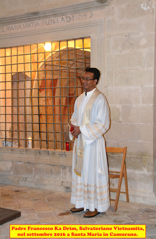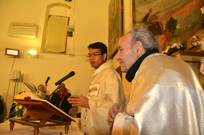 MONTELPARO – In una Chiesa dei Santi Pietro e Silvestro gremitissima per le cerimonie del Giovedì Santo, Padre Giovanni Guerrino Mazzoni, Vice-Parroco della Parrocchia di San Michele Arcangelo di Montelparo, ha concelebrato la Santa Messa con il giovane sacerdote Padre Francesco Ka Drim, Salvatoriano Vietnamita, che era già stato ospite della nostra parrocchia nel settembre 2016!