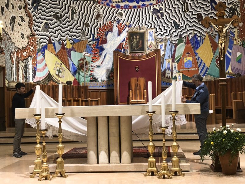 Al termine della liturgia eucaristica, sulle note del Pange lingua gloriosi, il Santissimo Sacramento è stato riposto nel tabernacolo della cappellina della Basilica, dove i fedeli hanno potuto adorarlo. Come previsto dalla liturgia del Giovedì Santo, l’altare è stato spogliato.