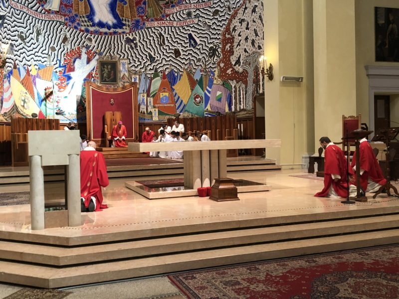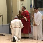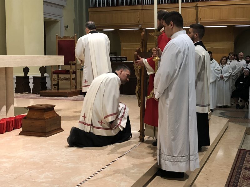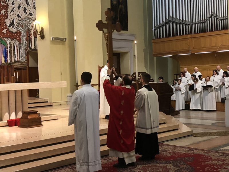È paradossale, ha concluso Mons. Bresciani, che il momento della morte di Gesù coincida con la massima rivelazione di Dio. Se non guardiamo al Crocifisso come il centurione, se non sappiamo riconoscere la divinità dell’uomo appeso alla croce, la nostra fede è monca. Possiamo anche noi, come il centurione, confessare umilmente la divinità di Gesù nell’adorazione della croce che stiamo per compiere.