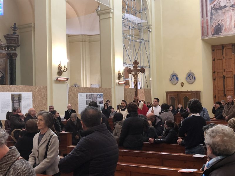 Terminata l’omelia, è stata elevata a Dio la preghiera universale in favore di tutti gli uomini. Dopo l’adorazione della Croce e la distribuzione dei presantificati, cioè le ostie consacrate durante la Messa In Coena Domini, il Vescovo e tutto il clero sono usciti, come previsto dalla liturgia, in silenzio.