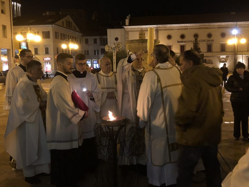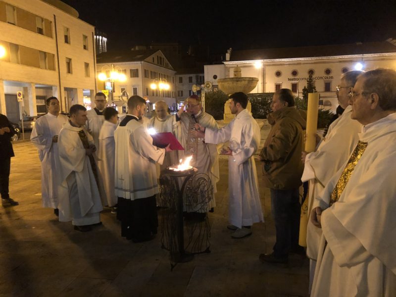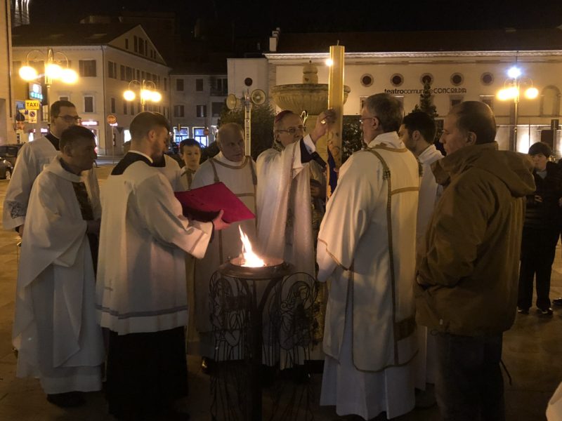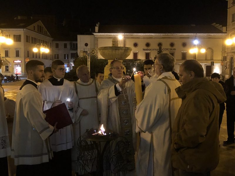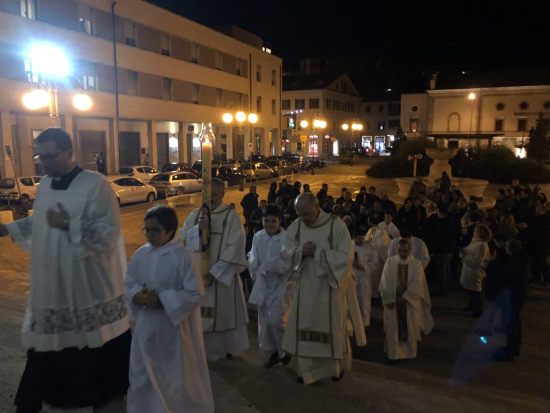 Siamo di fronte, questa sera, all’opera più grande e strepitosa di Dio: la sconfitta della morte e del peccato con la potenza del suo amore che ridà la vita. L’ha ridata a Gesù, suo unico Figlio, ma in Gesù risorto la ridà a ciascuno di noi, se glielo chiediamo e accettiamo di seguirlo su quella strada che ci ha indicato.