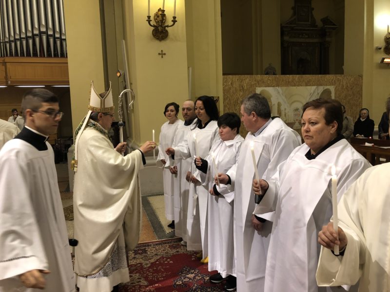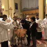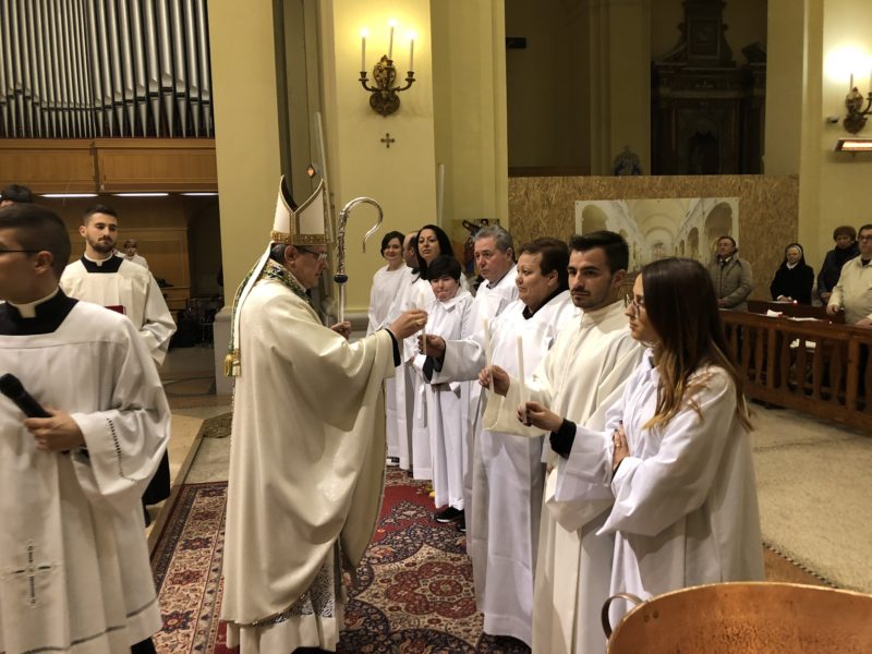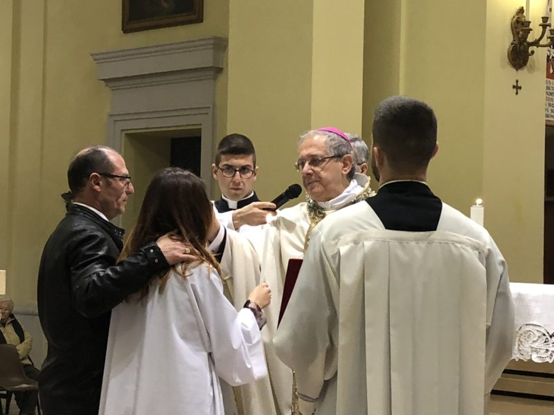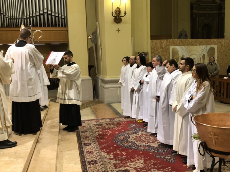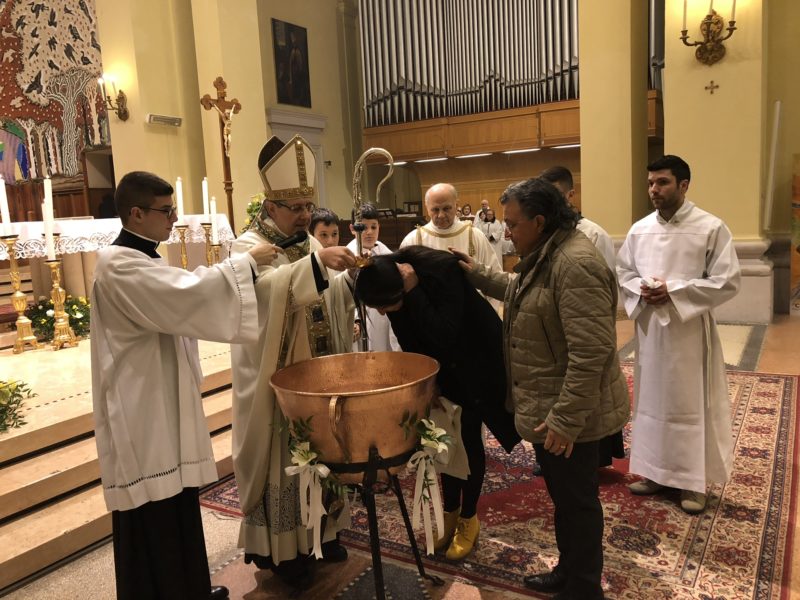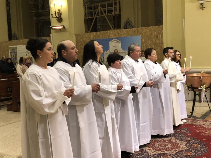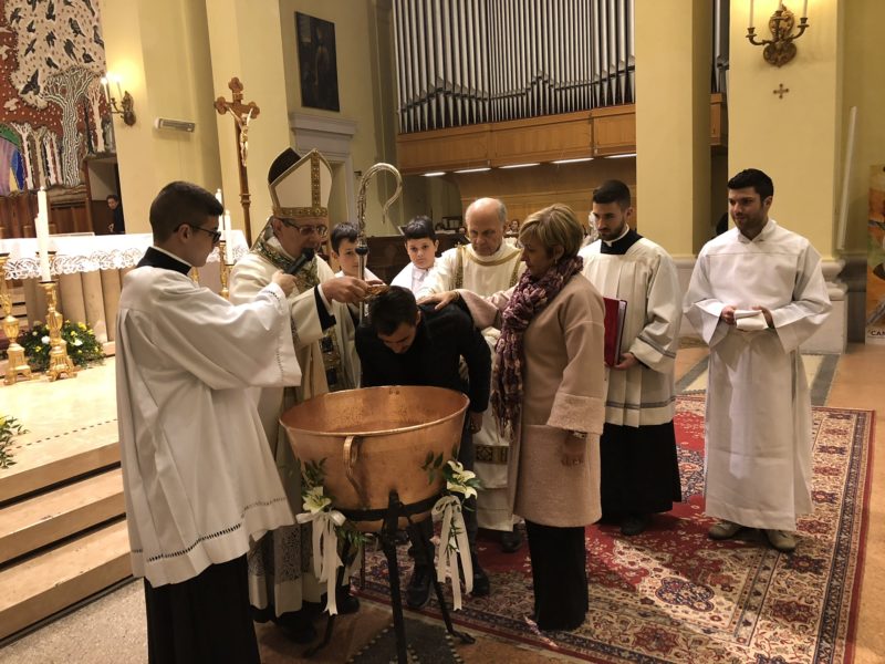 SAN BENEDETTO DEL TREONTO – Durante la solenne Santa Messa di Pasqua, il Vescovo Carlo ha amministrato il Battesimo, la Cresima e l’Eucaristia a 8 catecumeni di diverse nazionalità.