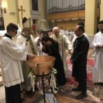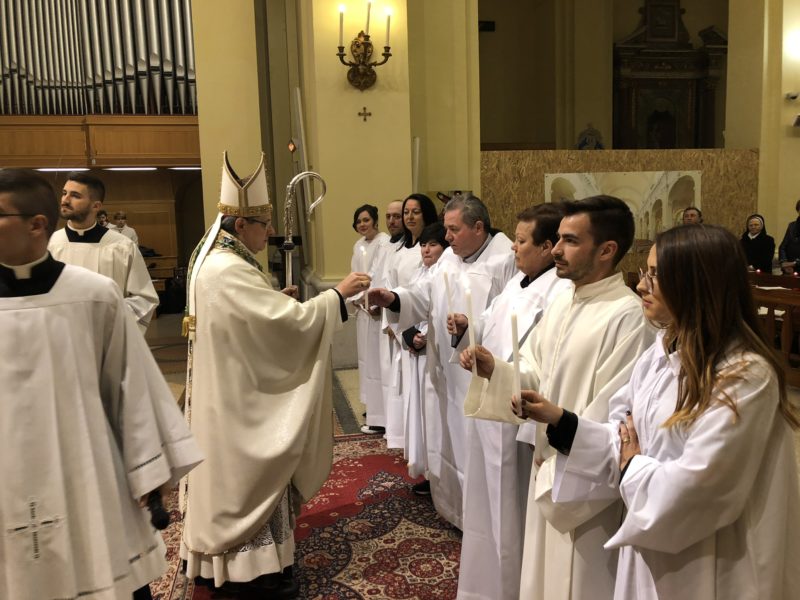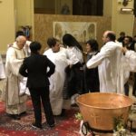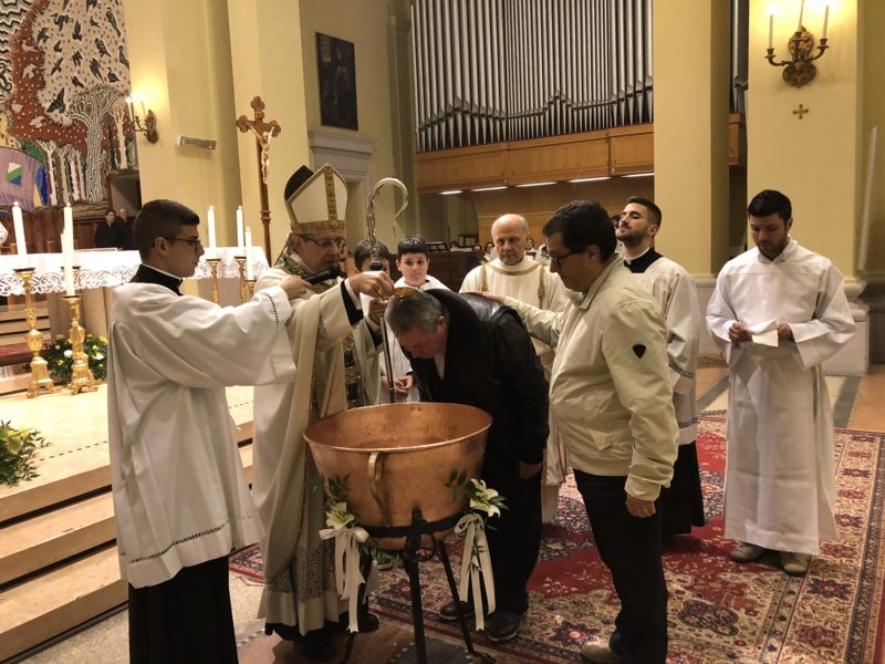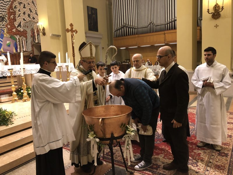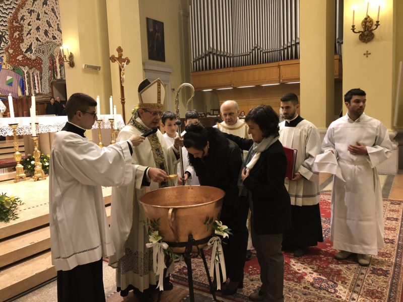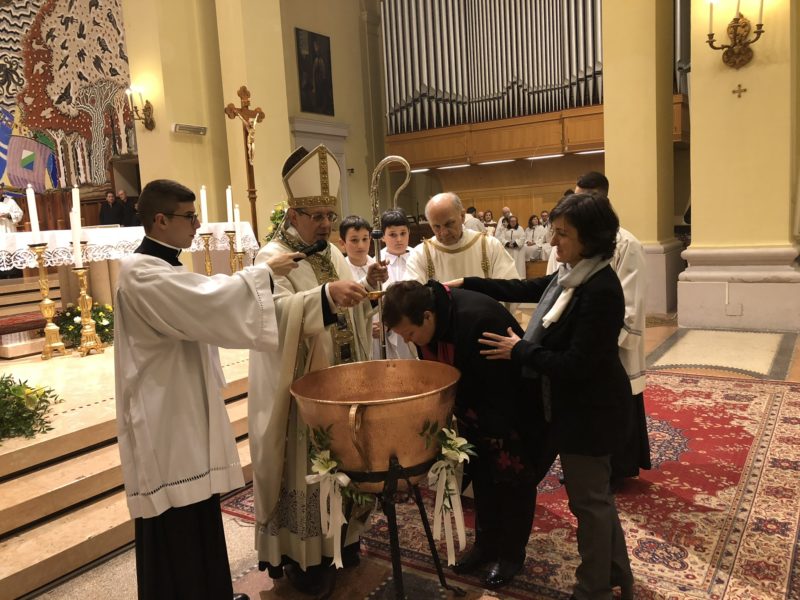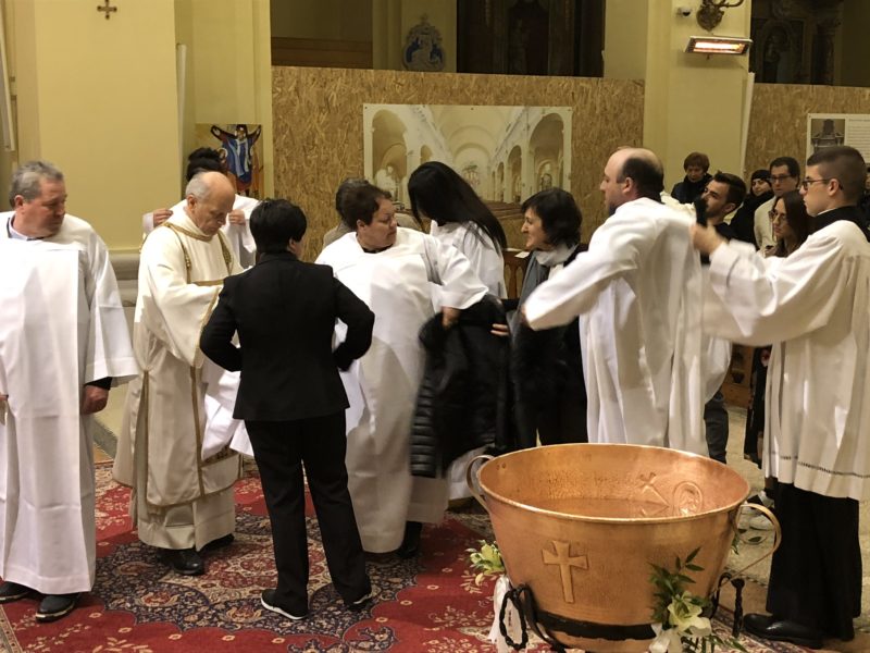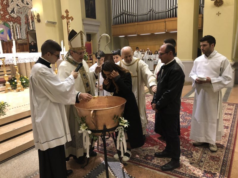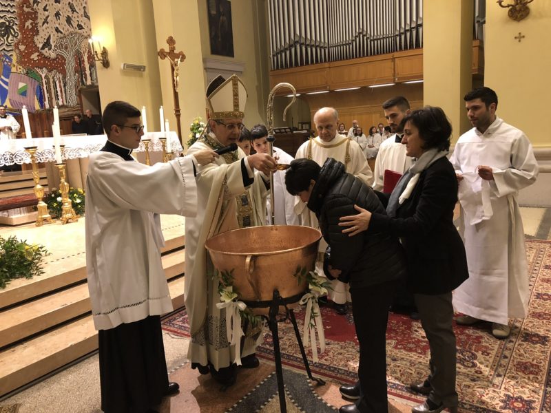 Ne faremo particolare esperienza anche noi questa sera: questi nostri fratelli a cui tra poco amministrerò il battesimo, fratelli che da adulti hanno chiesto di aver parte con Gesù della vita nuova del Risorto, passeranno attraverso l’acqua benedetta per entrare nella vita nuova attraverso l’opera della Chiesa cui il Risorto ha affidato il compito di annunciare il Vangelo in tutto il mondo e di battezzare ogni creatura. L’opera di Gesù, infatti, non è solo per qualcuno in qualche modo privilegiato rispetto ad altri, ma per ogni essere umano, di qualunque parte del mondo, purché lo voglia. Il fatto che questi nuovi nostri fratelli provengano da nazionalità diverse dalla nostra sta a dire che in Gesù, e quindi nella Chiesa, non ci possono essere separazioni od esclusioni di nessun genere, a meno che qualcuno voglia escludersi. La Chiesa è segno di unità tra il genere umano e tra tutti coloro che sono rinati dall’acqua e dallo Spirito e a nessuno, per nessun motivo, è lecito dividerla: sarebbe come infliggere una nuova ferita al santo corpo di Cristo.