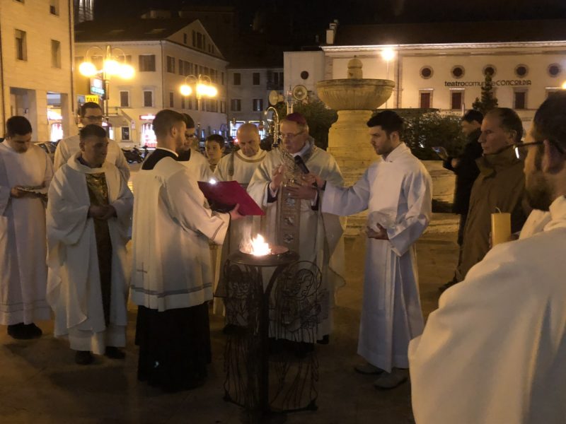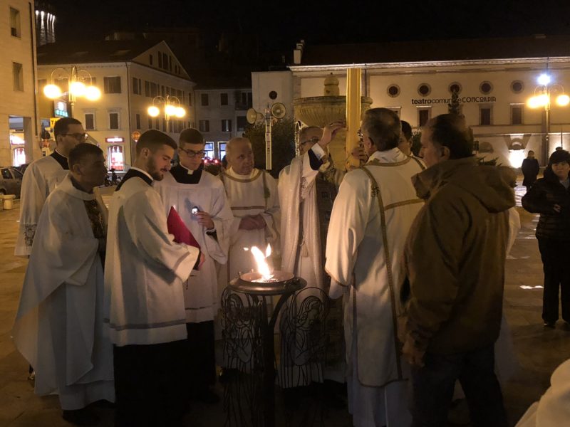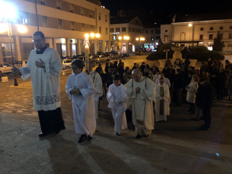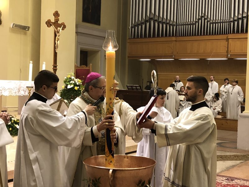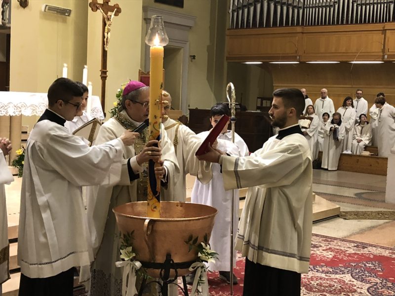 Facendo così, con la grazia di Dio, vivremo nella Pasqua, che questa sera celebriamo solennemente nella memoria liturgica, la vita di Cristo sarà in noi e potremo annunciare al mondo che veramente Cristo è risorto e noi l’abbiamo esperimentato nella vita nuova che ci ha donato.