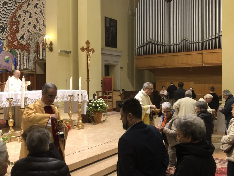 Mons. Bresciani ha proseguito la sua meditazione riflettendo sull’importanza dei sacerdoti. Gesù nel vangelo dice: “Come il Padre ha mandato me, anche io mando voi”. Il sacerdote, come gli apostoli, è un uomo mandato da Dio. Guardando ai sacerdoti, spesso ci soffermiamo sugli aspetti umani, che pure sono importanti, ma dobbiamo compiere un ulteriore passo e guardarli con gli occhi della fede, come a dei mandati da Dio.