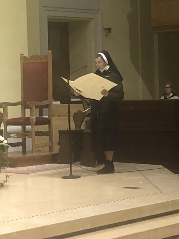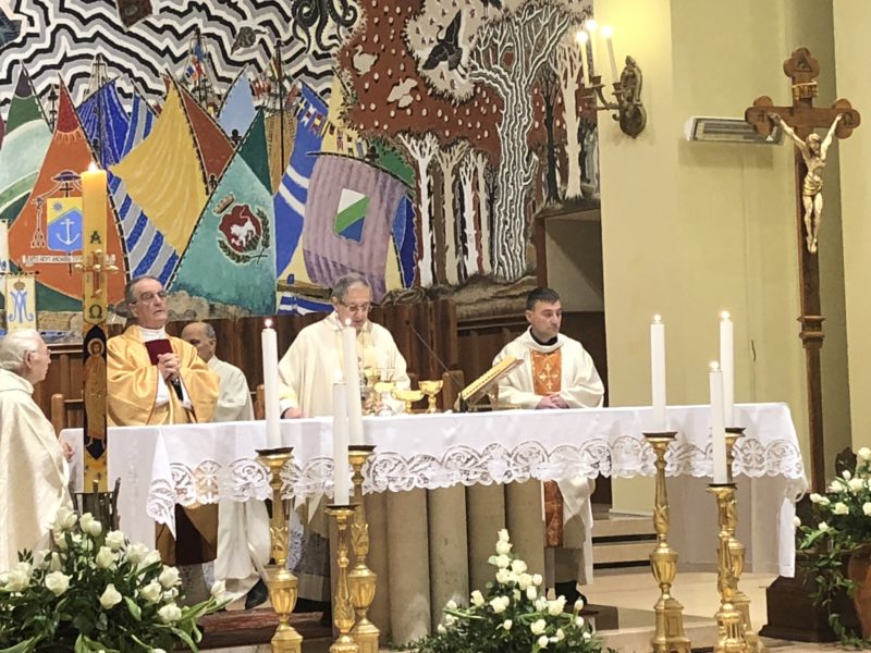 Ogni celebrazione eucaristica è di per sé un atto di ringraziamento a Dio per tutti i suoi benefici e lo è stato particolarmente oggi per il dono del sacerdozio di don Romualdo. Al termine della liturgia eucaristica, è stata data lettura degli auguri giunti dal Santo Padre Francesco. Il presidente del Consiglio Pastorale Parrocchiale, Enrico Rossi, ha a sua volta espresso delle parole di ringraziamento per quanto don Romualdo ha fatto e sta facendo nella parrocchia. Colme di gratitudine anche le parole del Sindaco Pasqualino Piunti – presente alla celebrazione insieme all’Assessore Annalisa Ruggeri e al Consigliere Pierfrancesco Troli – che ha sottolineato in particolare l’apostolato sociale di don Romualdo. Ha preso infine la parola il festeggiato che, con grande commozione, dopo aver ringraziato Dio, la propria famiglia, il Vescovo e tutti gli intervenuti ha espresso il desiderio di continuare a servire totalmente e senza riserve il Signore e la Chiesa.