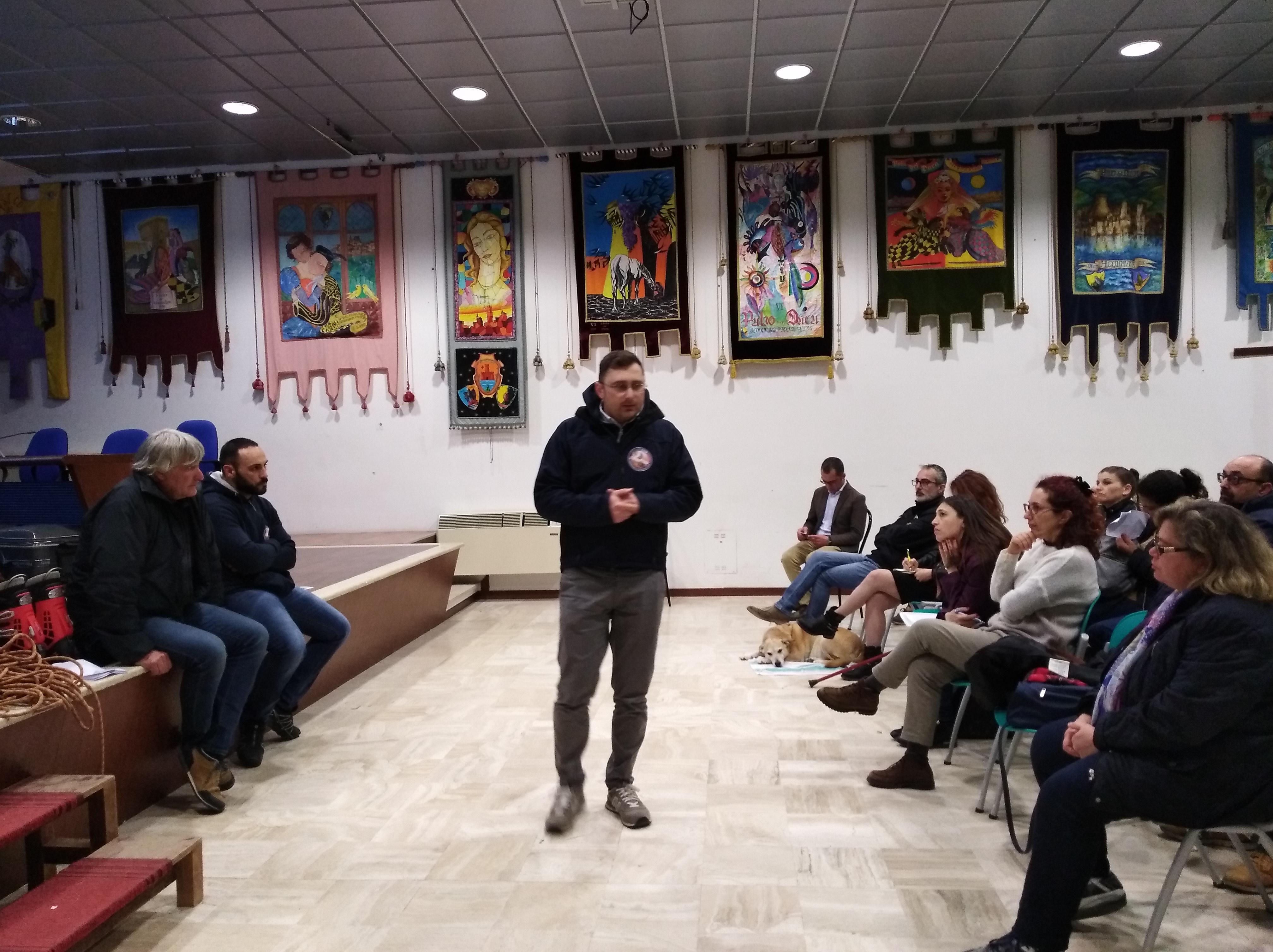 Il primo argomento è stato tenuto da Claudio di R.C.V., ha parlato dello zaino B.O.B. e ha analizzato bene cos’è, con cosa lo si deve riempire e quanti e quali tipi ne esistono. Ha proseguito dicendo che esistono zaini B.O.B. per singoli individui, per famiglie, per il soccorso e tanti altri. Gli elementi che li accomunano sono: acqua, sacco a pelo, un cambio abiti, medicinali, barrette alimentari e carica batterie per cellulari. Naturalmente le cose necessarie da inserire nello zaino sono molte altre. Ai presenti è stato consigliato di avere già pronto lo zaino in qualsiasi momento, ma siccome spesso una forte scosse di terremoto è annunciata da lievi scosse, è stato suggerito di tenerlo in macchina appena le piccole scosse cominciano ad annunciarsi.
