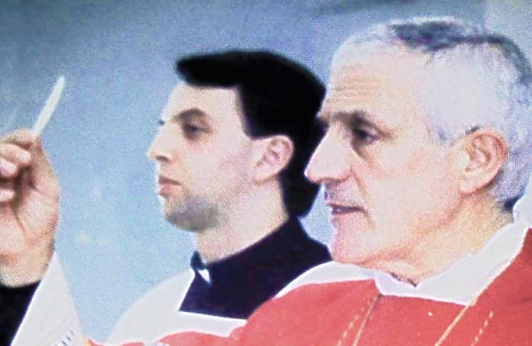 E mi pare di vederlo ancora là. Sì, perché almeno un paio di volte, svegliato da qualche rumore – quello della porta della sua stanza che si apre e quello dei suoi passi – e attratto da quell’unica luce accesa nel grande appartamento dell’episcopio ancora immerso nel buio della notte, furtivamente, a sua insaputa, mi sono avvicinato per “spiare” la sua sagoma e, quindi, la sua postura e il suo sguardo rapito in quell’atmosfera di intimità e di raccoglimento.