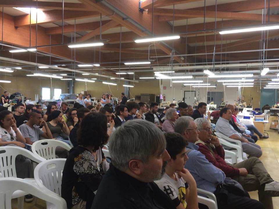 I locali dell’azienda si sono poi trasformati in un luogo di incontro e di scambio di esperienze provenienti dal mondo del lavoro. Hanno quindi preso la parola il parroco di Sant’Egidio e il responsabile dell’Ufficio Diocesano per la Pastorale Sociale e del Lavoro per dare il benvenuto a tutti gli intervenuti. Uno studente dell’Ipsia si San Benedetto ed una studentessa dell’Itis di Sant’Egidio hanno avuto modo di esprimere le loro divergenti opinioni sul progetto di alternanza scuola-lavoro. Il Prof. Luigi Verdecchia ha illustrato il progetto di collaborazione con l’Ufficio Diocesano per la Pastorale Sociale e del Lavoro che si è sviluppato in una serie di 6 incontri. La parola è poi passata alla figlia dell’imprenditore Scarpantoni, ad una dipendente che da 25 anni lavora presso l’azienda e a un sindacalista della Cisl di Teramo. Lo scambio di idee e di testimonianze sono state di stimolo per riflettere sulla odierna condizione del mondo del lavoro.