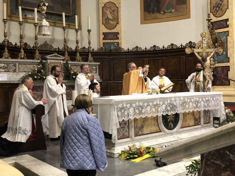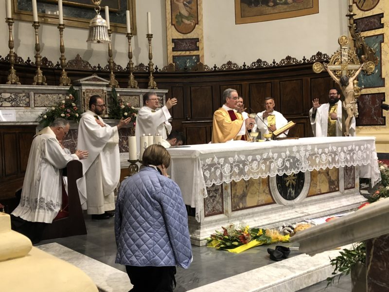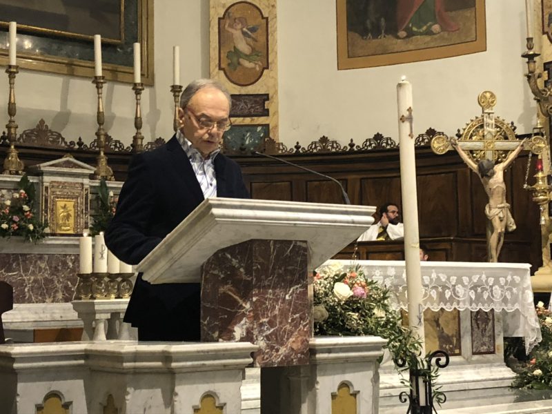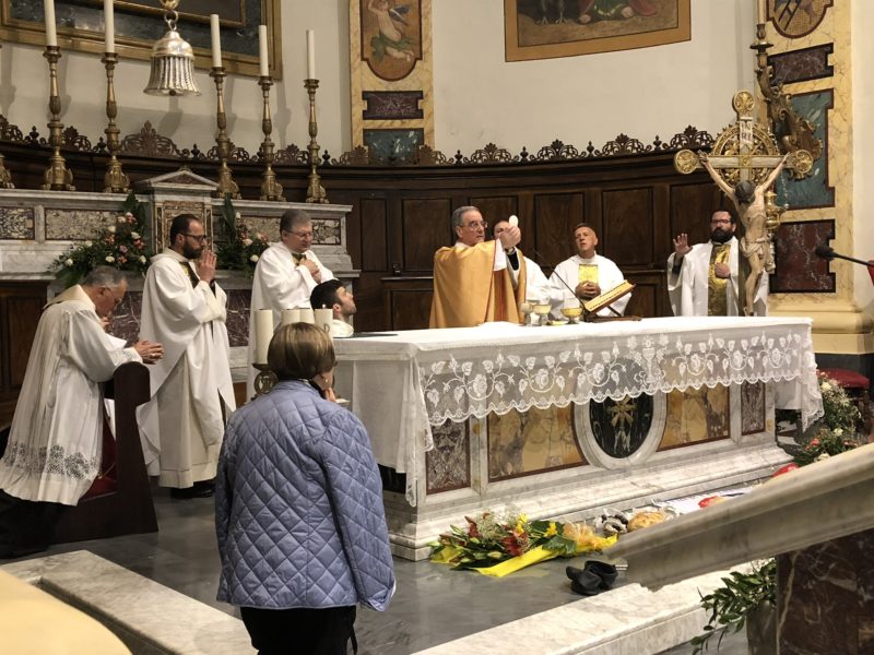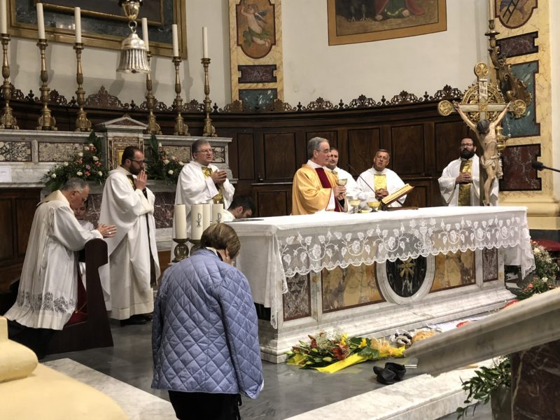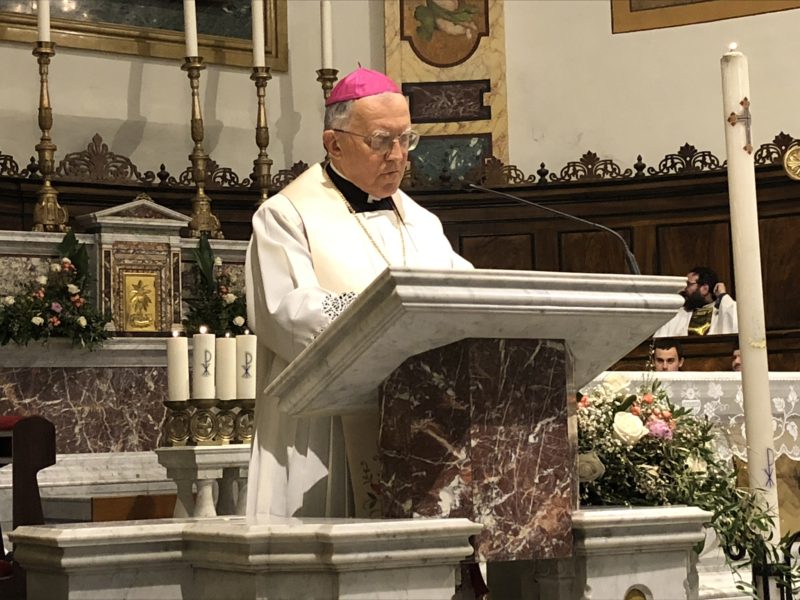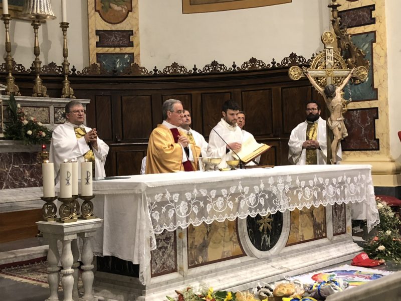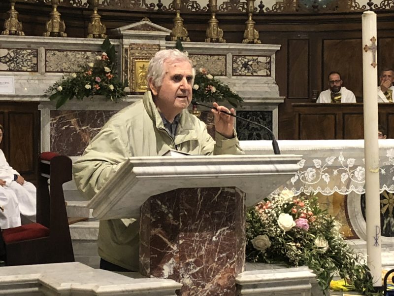 Mons. Gestori ha ricordato come, prima di tutto, don Romualdo sia stato un padre per la comunità parrocchiale e che la sua paternità sia stata feconda è provato dal gran numero di persone intervenute alla Messa per stringersi attorno a lui. Egli è stato un punto di riferimento per ogni parrocchiano che si è rivolto a lui non solo per ricevere i sacramenti, ma spesso per un consiglio, una parola di conforto o incoraggiamento. Don Romualdo – ha continuato il Vescovo Emerito – è stato un servitore a tempo pieno della sua comunità: infatti ogni sacerdote, essendo padre della comunità, lo è in ogni momento della giornata. Infine – ha concluso Mons. Gestori – don Romualdo è stato un uomo di Dio che ha richiamato la presenza di Cristo in parrocchia, un uomo che ha fatto le cose di Dio ma che soprattutto è vissuto alla sua presenza.