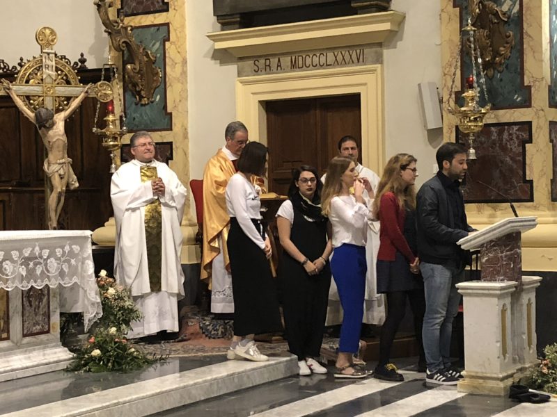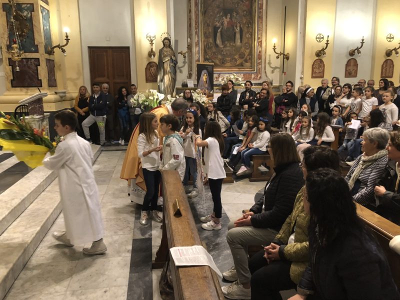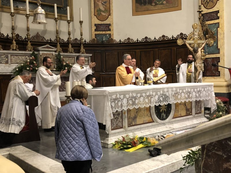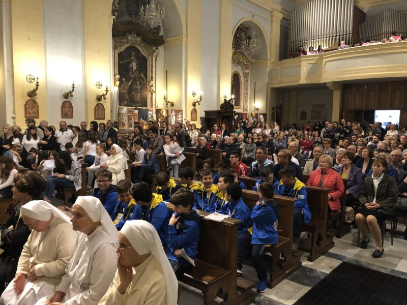 SAN BENEDETTO DEL TRONTO – Continuano i festeggiamenti per i 50 anni di sacerdozio di Mons. Romualdo Scarponi. Infatti sabato 5 maggio il vicario generale della nostra diocesi è tornato nella parrocchia di San Benedetto Martire, dove ha prestato servizio per oltre 40 anni, e ha presieduto la celebrazione eucaristica delle ore 18.00. Hanno concelebrato con lui don Tommaso Capriotti, attuale parroco di San Benedetto Martire, don Dino Pirri, don Armando Moriconi e don Lanfranco Iachetti. Presente anche il Vescovo Emerito della nostra diocesi, Mons. Gervasio Gestori che ha tenuto l’omelia.