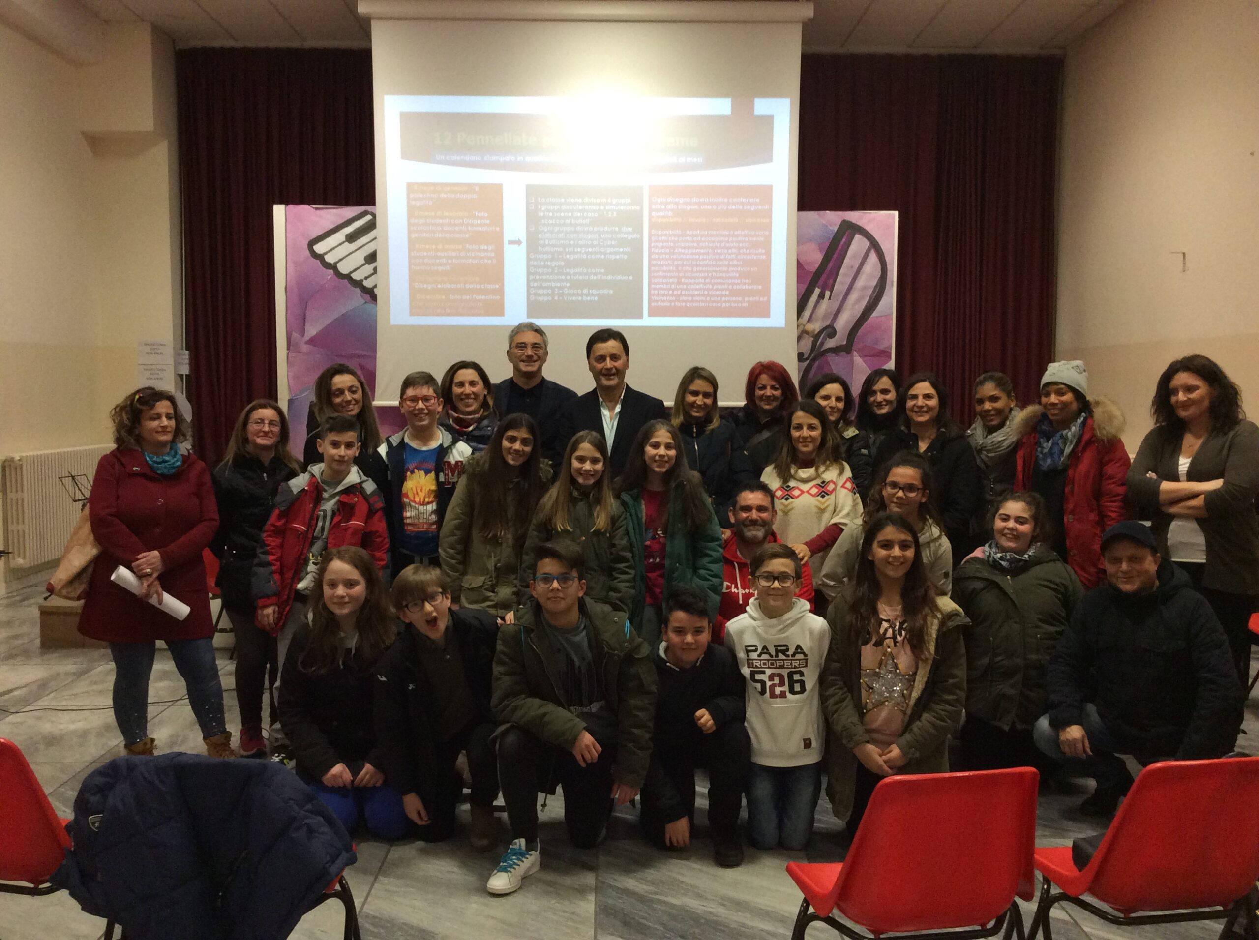 In quest’ottica, per la seconda volta dall’inizio del corso, si sono riuniti presso la scuola Secondaria di Primo Grado “Cappella” di Porto D’Ascoli, genitori e docenti con gli studenti della classe pilota del progetto, per verificare ed ottimizzare lo spirito partecipativo ed operativo che sta creando le condizioni per tessere la rete collaborativa necessaria per crescere insieme. Durante l’incontro i formatori hanno promosso un dibattito anche sui recenti fatti di cronaca nazionali. Interessanti gli interventi dei ragazzi, che hanno mostrato una forte capacità critica, ad esempio sottolineando come il restare in silenzio o peggio riprendere atti di Bullismo con il telefonino sia da considerarsi come una manifestazione di complicità con il bullo ed i suoi amici. I formatori hanno illustrato la parte del progetto riservata alla tutela della persona in palestra attraverso la protezione consapevole di squadra, vale a dire l’attivazione di azioni programmate in caso di rischio, pericolo o minaccia attraverso l’interazione tra mente, corpo e tecniche di difesa. Questo nuovo modello pratico-operativo è insegnato ai giovani in palestra e coinvolge anche docenti e genitori, soprattutto perché prevede che i ragazzi debbano in caso di necessità rivolgersi ad una figura che possa intervenire per dare loro supporto e sicurezza.