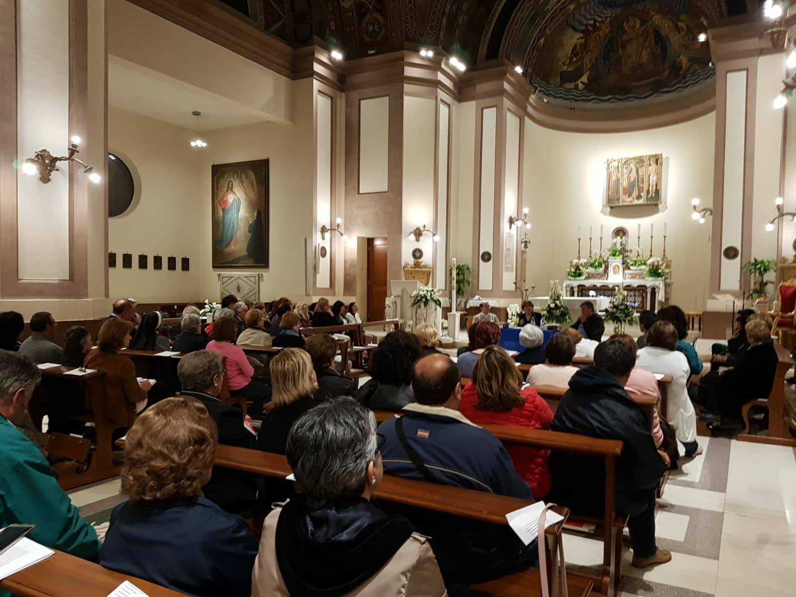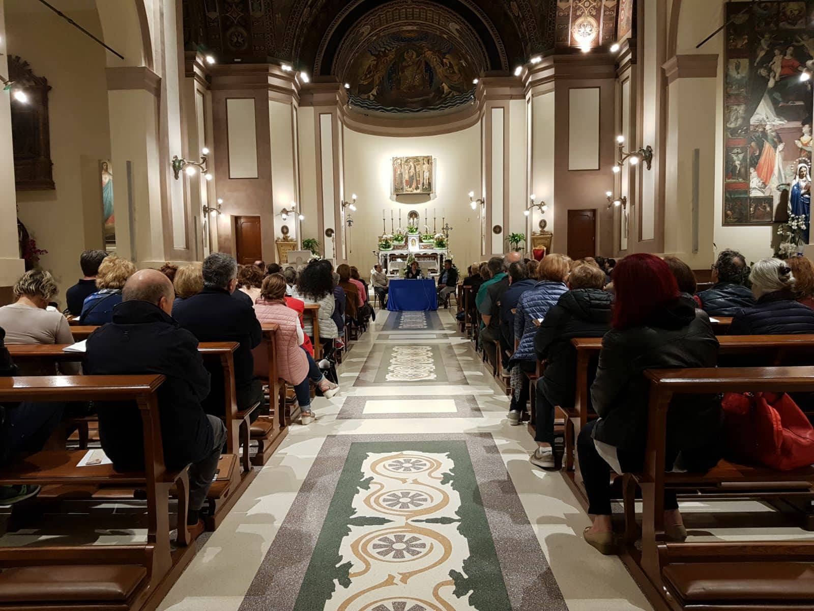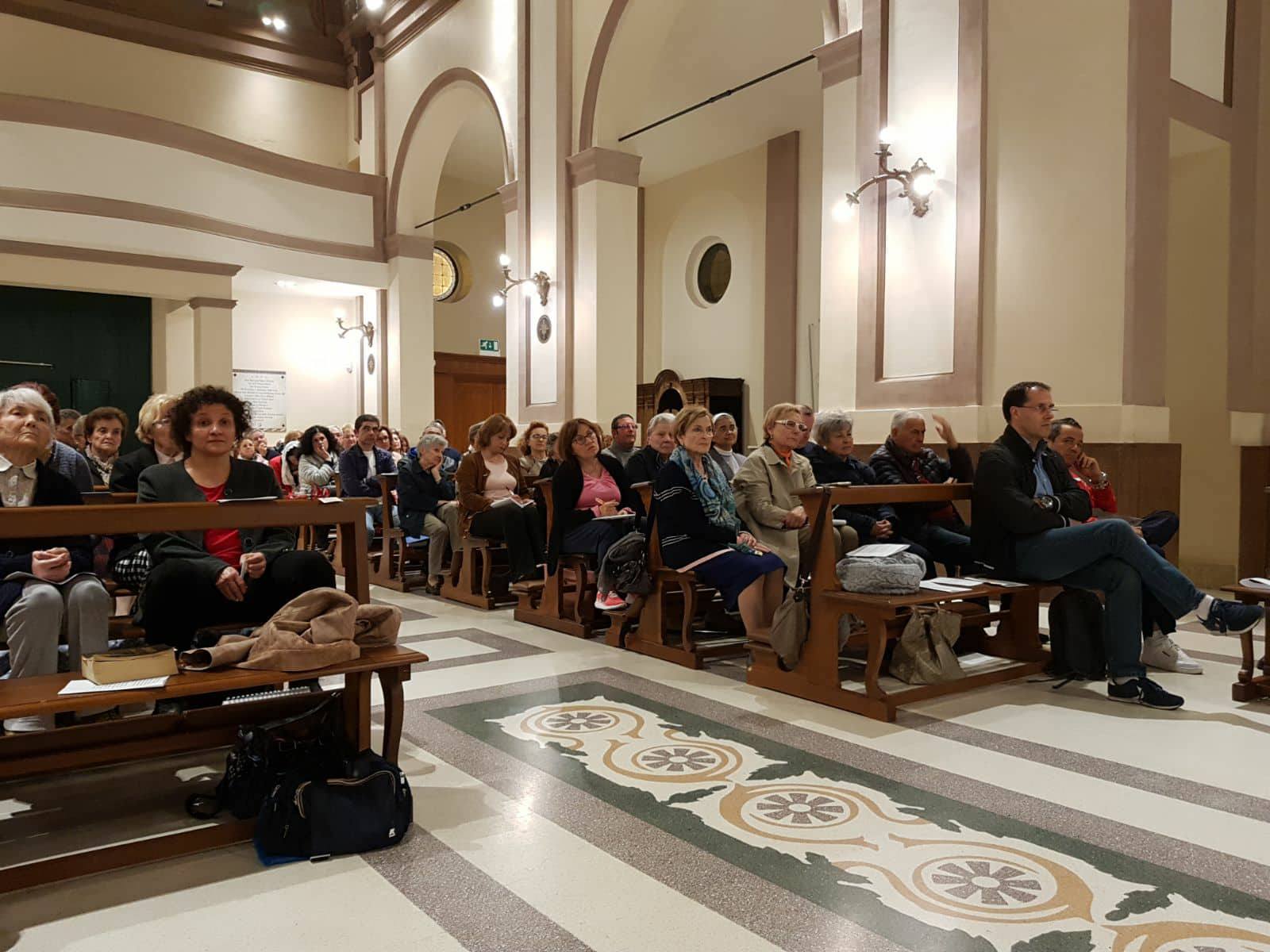 E questo – ha spiegato la Professoressa Virgili – è ciò che ci si aspetta da ogni cristiano: abbattere i muri per andare oltre. È ciò che intende Papa Francesco quando parla di un’ecclesiologia rinnovata: tutta la Chiesa è chiamata ad evangelizzare, nessun battezzato è escluso da questo dovere, e – ha aggiunto la relatrice – la ragione di questa necessità è la carità. La professoressa Virgili ha poi approfondito il brano tratto del Libro dei Numeri, spiegando come lo Spirito Santo sia sceso sui settanta anziani delle tribù di Israele per aiutare Mosè nell’arduo compito che il Signore gli aveva affidato di salvare il suo popolo. Lo Spirito Santo fa uscire dalla solitudine e crea la comunità, la Chiesa come corpo mistico di Cristo. La docente ha spiegato come i quaranta anni di Israele nel deserto siano lo spaccato di una vita difficile, proprio come il mondo d’oggi, per questo è necessario invocare lo Spirito Santo su tutti quelli che non ce la fanno, sugli ultimi, sui bisognosi di carità. Dio, così come fece con Mosè, non ci toglie il peso da portare, ma ci dona dei fratelli per aiutarci ad agire; lo Spirito Santo – ha affermato con forza la Professoressa Virgili – è la grande linfa delle relazioni! La relatrice ha poi chiuso il suo insegnamento esortando i fedeli a farsi “traduttori” dello Spirito Santo in parole, amore e carità, affinché l’amore di Dio arrivi a tutti.