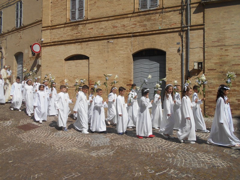 Verso le 10.20 i bambini partendo dalla terrazza vicino la chiesa dove avevano pregato insieme al parroco, si sono diretti in chiesa, ciascuno con in mano un giglio bianco che poi avrebbero consegnato alle mamme. La Santa Messa è stata celebrata da don Alfredo e concelebrata da padre Claudio con l’assistenza del diacono Giovanni. Nell’omelia don Alfredo ha detto ai bambini: “Oggi siete molto sorridenti, felici, avete dei volti bellissimi che palesano la vostra gioia di ricevere Gesù. Siete grandi oggi, non siete piccoli come quando siete stati battezzati e i vostri genitori vi hanno portato in braccio in chiesa, oggi siete entrati da soli. Ricevere Gesù per la prima volta è un po’ come “rinascere”, siete più consapevoli di avere Gesù sempre vicino a voi e dovete testimoniarlo nella vostra vita”. Tutti i ventisei bambini hanno curato una parte della Messa, così come alcuni genitori. I bambini e i genitori hanno espresso tanti ringraziamenti nelle loro preghiere, prima di tutto a Gesù, poi verso il parroco, verso i genitori, le educatrici suor Isabella, Giuliana e Tiziana, i capi scout Ilaria e Anastasia, il coro dei bambini e tutti quelli che li hanno seguiti e accompagnati in questi anni fino a questo bellissimo giorno. I bambini erano sereni, luminosi, felici e devotamente partecipi a tutta la cerimonia.