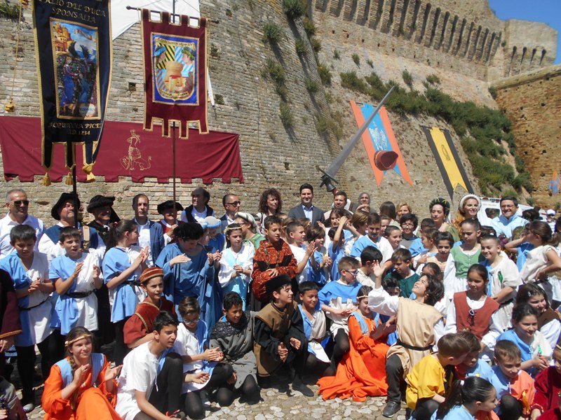 ACQUAVIVA PICENA – Presso il “Delfino Blu” sarà presentato il Drappo del Palio dei Bambini Venerdì 18 maggio presso il ristorante “Delfino Blu” di Grottammare si terrà la serata culinaria “Dell’orto”, durante la cena il presidente dell’Associazione Palio del Duca Cav. Nello Gaetani presenterà alla stampa il Drappo del Palio dei Bambini XV edizione disegnato da Maurizio Crescenzi alunno della III C dell’Istituto Scolastico Comprensivo di Monsampolo del Tronto. Insegnante di Crescenzi è la professoressa Agresti Loredana. Tale Drappo verrà conteso tra i quattro rioni: Civetta, Aquila, Picchio e Falco. Il Palio dei bambini si svolgerà sabato 26 maggio alle ore 9:00 nella piazza del Forte di Acquaviva Picena. Parteciperanno duecentosettanta bambini che sfileranno in costume d’epoca lungo via Leopardi fino a raggiungere la Fortezza dove il parroco don Alfredo benedirà il Drappo, il corteggio sarà preceduto dai tamburini guidati dal M° Giulio Spinozzi; la prescelta per rivestire il ruolo della duchessa Forasteria è stata Micol Di Mascolo di Acquaviva. Il Palio dei Bambini “Vivere la storia da protagonisti” si inserisce nel progetto POF ed ha come finalità la conoscenza del proprio territorio e il compito di avvicinare i giovani alla storia e alle tradizioni che lo caratterizzano.